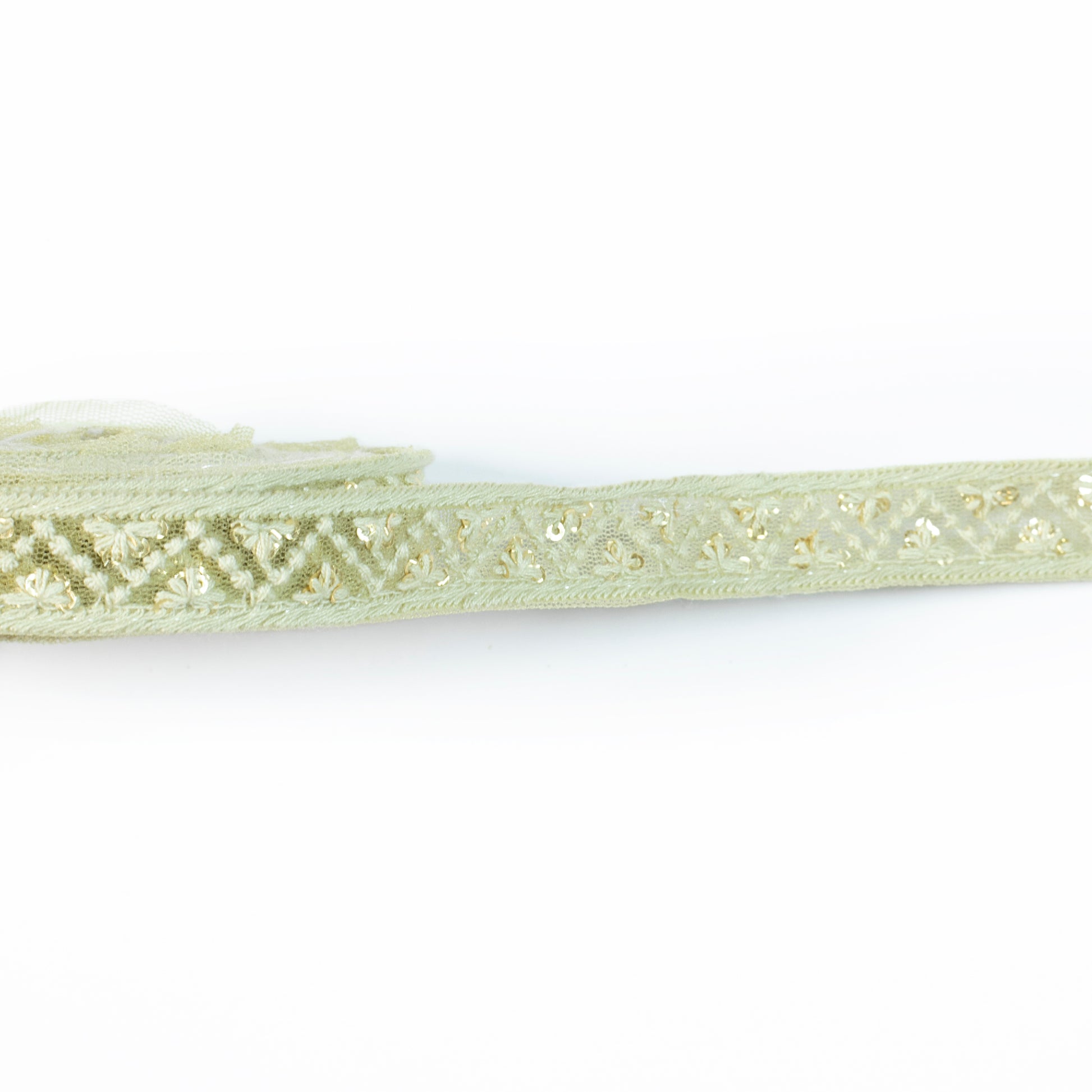 Mint Green Chevron Pattern Sequins Embroidery Net Lace (9 Mtr)
