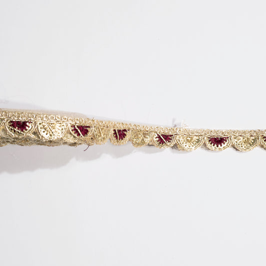 Dark Maroon Resham Thread and Sequins Scalloped Lace (9 Mtr) Dark Maroon Resham Thread and Sequins Scalloped Lace (9 Mtr)