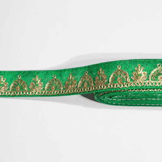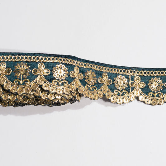 Zardosi Embellished Bottle Green Triangle Scalloped Lace (9 Mtr) Zardosi Embellished Bottle Green Triangle Scalloped Lace (9 Mtr)
