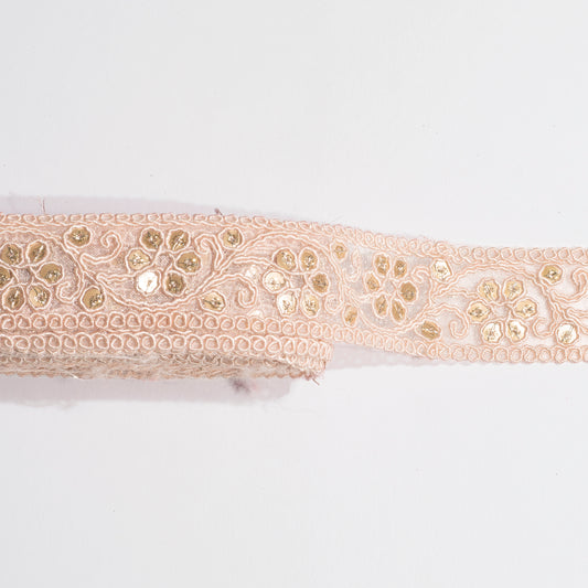 Sequins Glitter on Beautiful Pastel Peach Lace (9 Mtr) Sequins Glitter on Beautiful Pastel Peach Lace (9 Mtr)