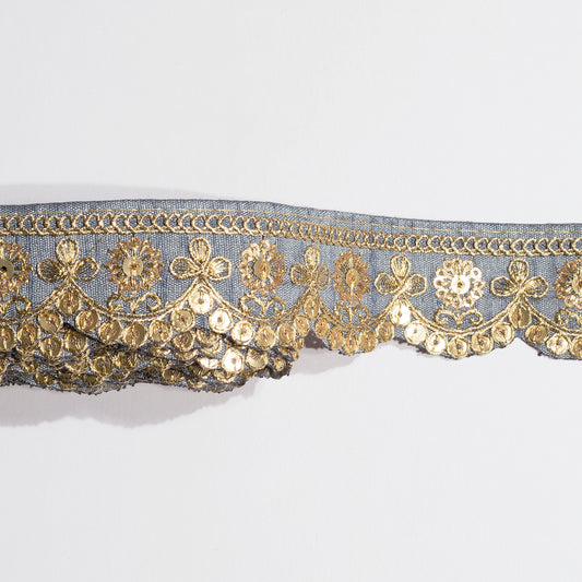 Slate Grey Fancy Sequins Adorn Delicate Scalloped Lace (9 Mtr) Slate Grey Fancy Sequins Adorn Delicate Scalloped Lace (9 Mtr)