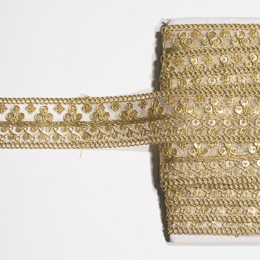 Zardosi Embellished Golden Triangle Scalloped Lace (9 Mtr) Zardosi Embellished Golden Triangle Scalloped Lace (9 Mtr)