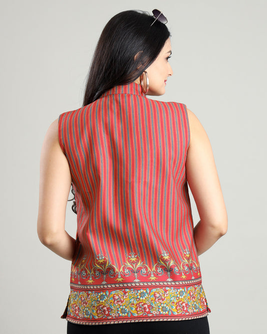 Women's Sleeveless Striped Nehru Jacket