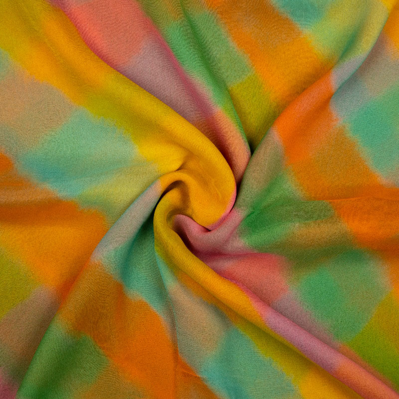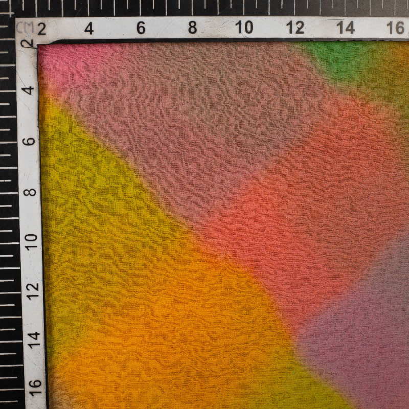 Pink And Yellow Leheriya Pattern Digital Print Bemberg Chiffon Fabric
