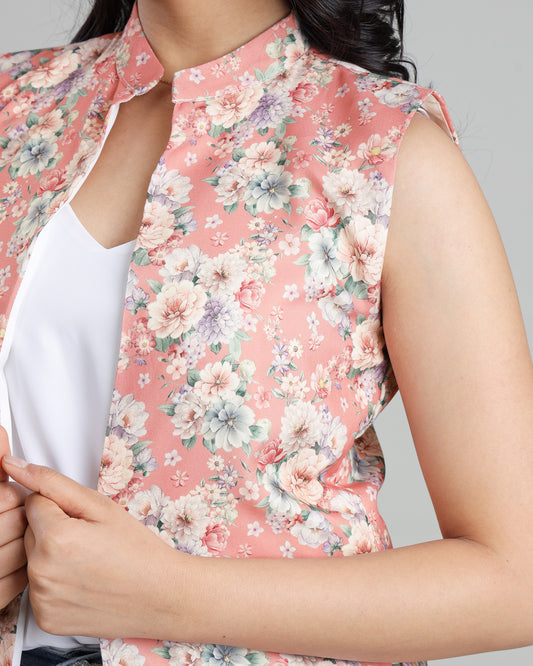 Attractive Multicolor Floral Sleeveless Long Jacket For Women Attractive Multicolor Floral Sleeveless Long Jacket For Women