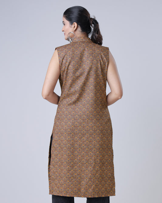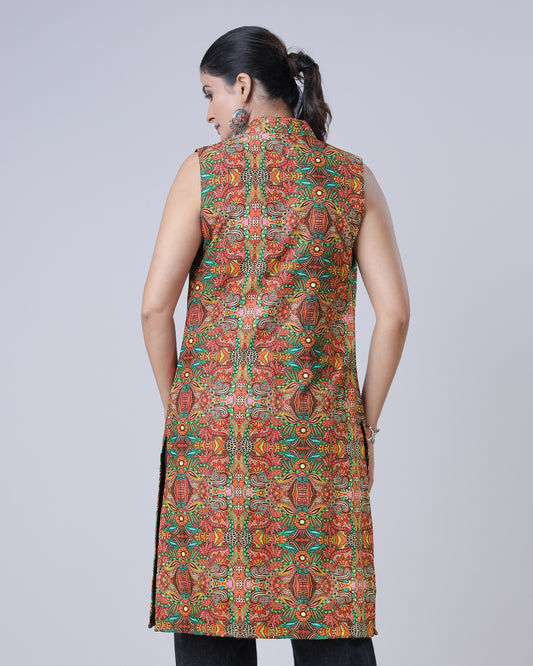 Vintage Mugal Art Sleeveless Long Jacket For Women Vintage Mugal Art Sleeveless Long Jacket For Women
