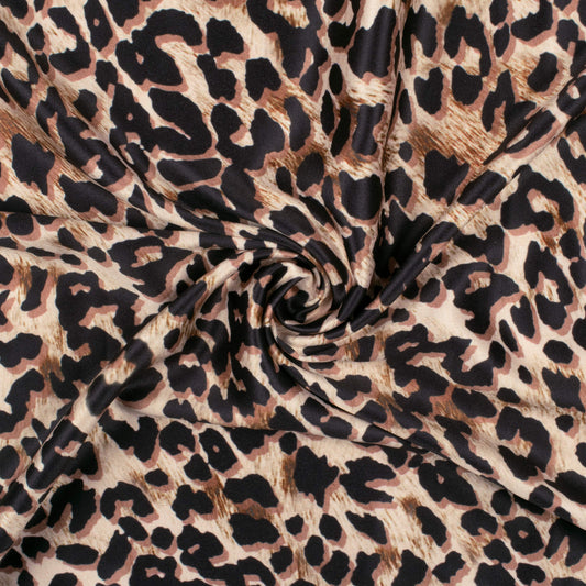 Black And Pecan Brown Animal Pattern Digital Print Lush Satin Fabric Black And Pecan Brown Animal Pattern Digital Print Lush Satin Fabric