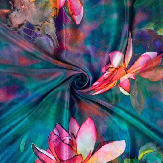 Multi Color Floral Digital Print Lush Satin Fabric Multi Color Floral Digital Print Lush Satin Fabric