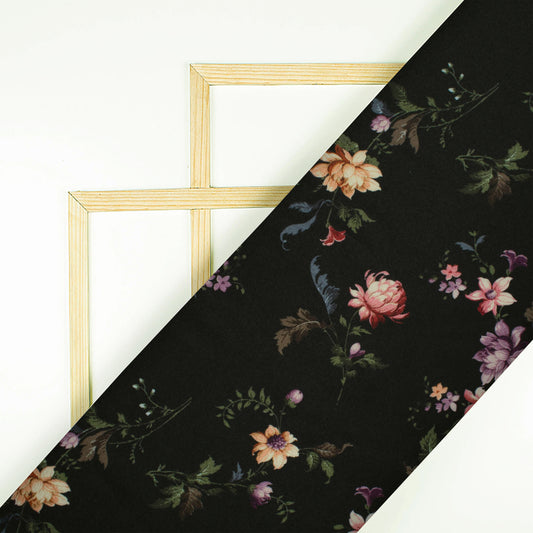 Black And Pink Floral Pattern Digital Print Premium Lush Satin Fabric Black And Pink Floral Pattern Digital Print Premium Lush Satin Fabric