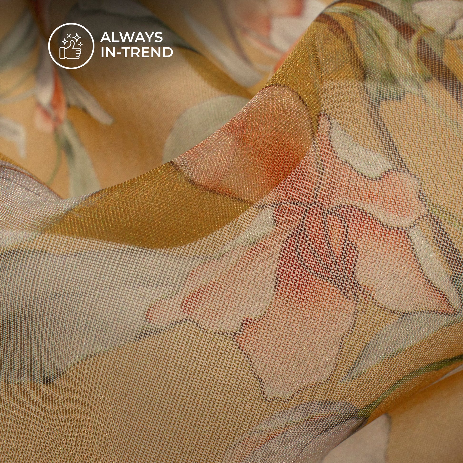Organza fabric is a plain weave material, lightweight with a crisp hand. It is sheer, smooth, transparent, and slippery too. The fabric brings royal vibes, the textures are cool, and bring Draping quality is very clean and hence much preferable by tailors. This fabric is worth the price. It is used in making, casual wear, tops, dresses, lehengas, sarees, etc.