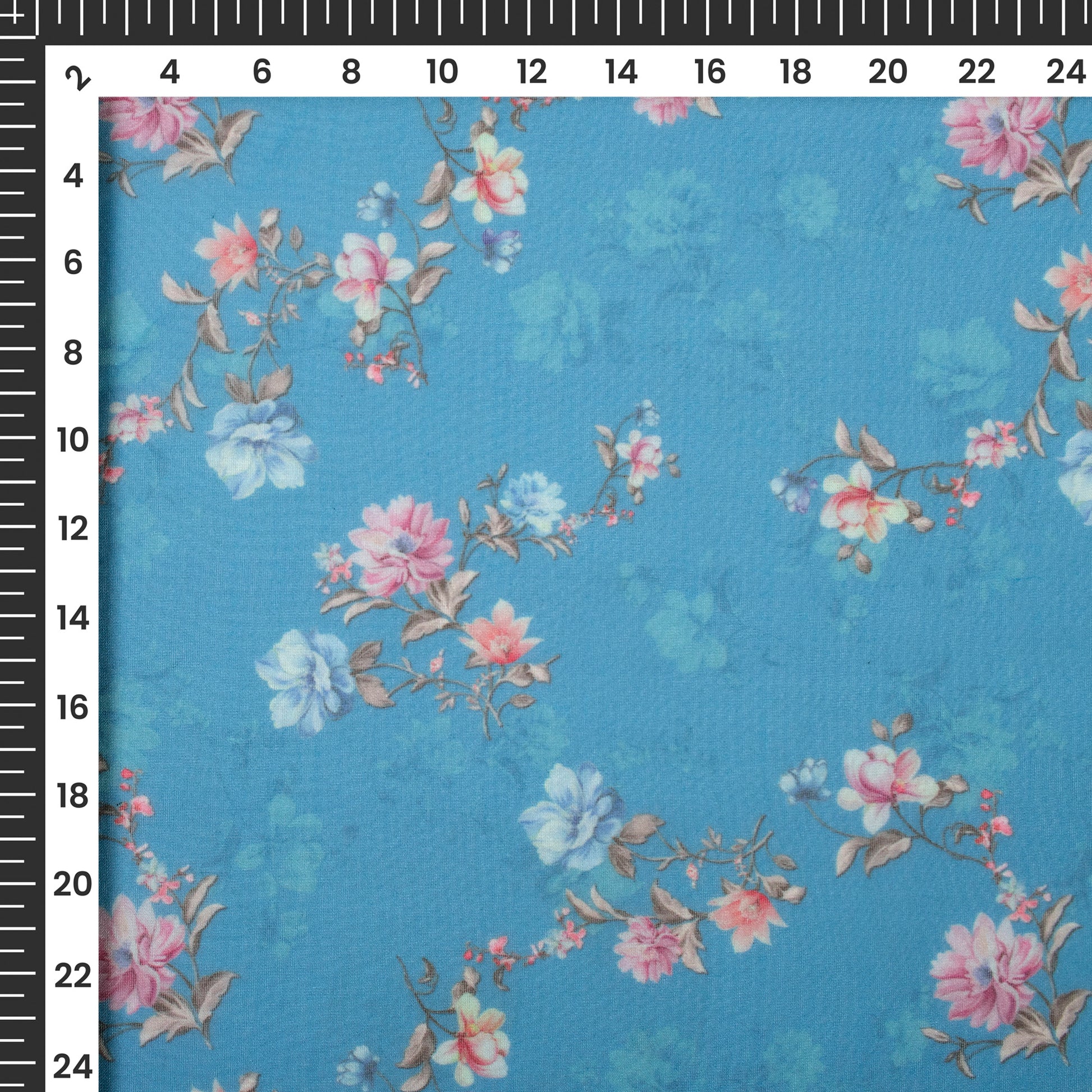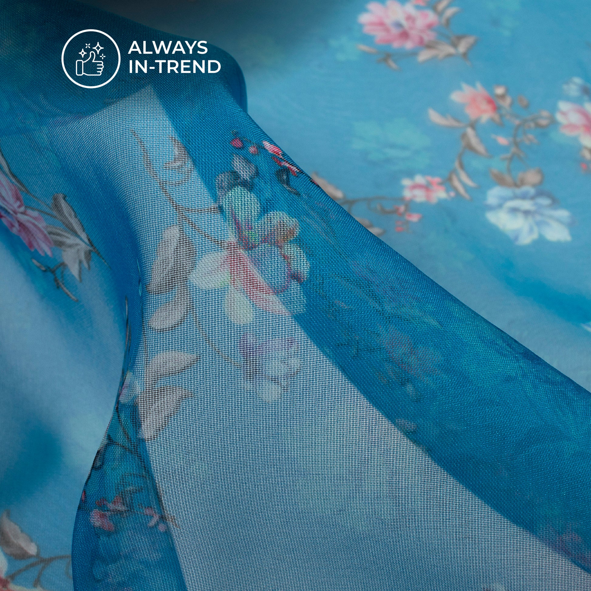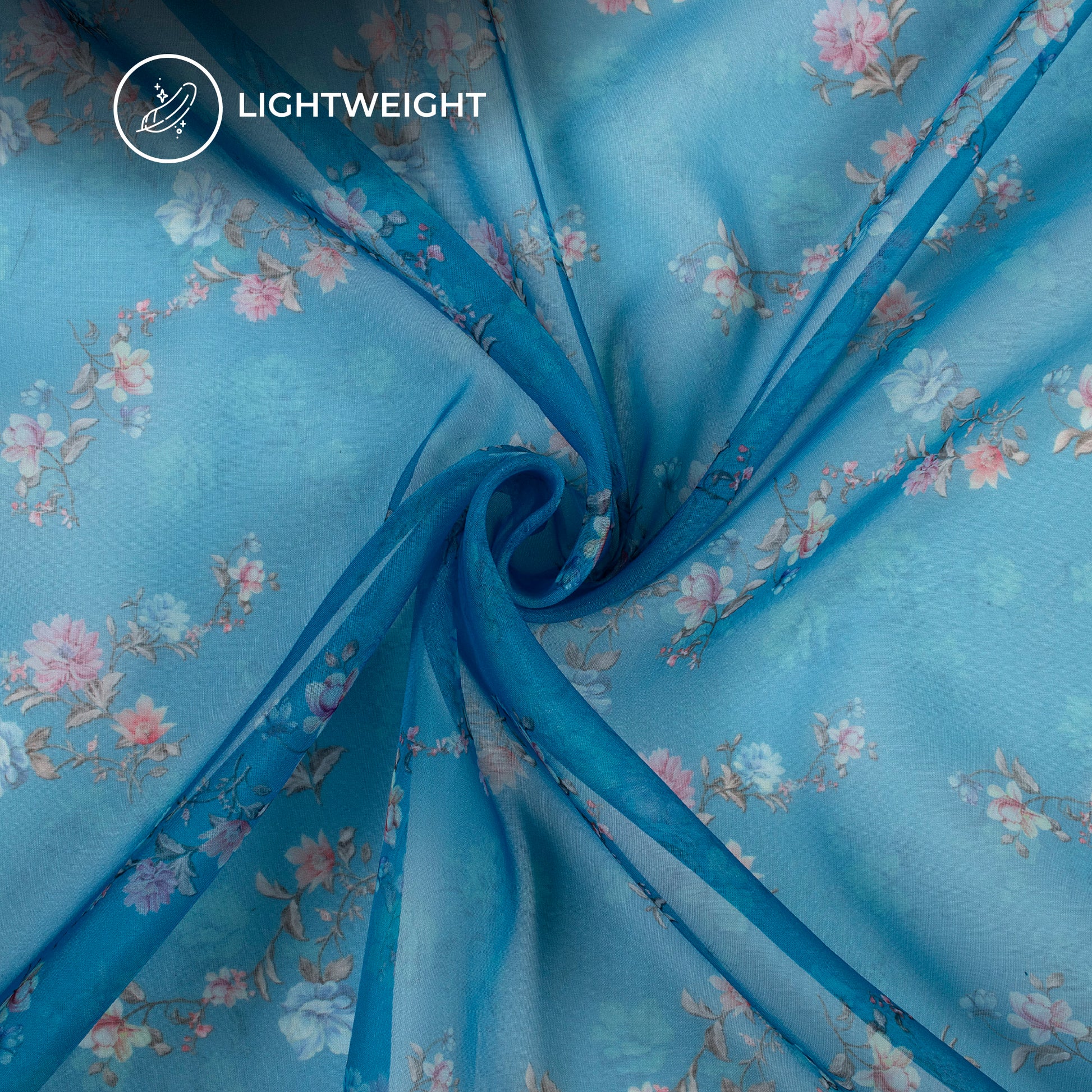 Cobalt Bule Floral Digital Print Matt Organza Fabric