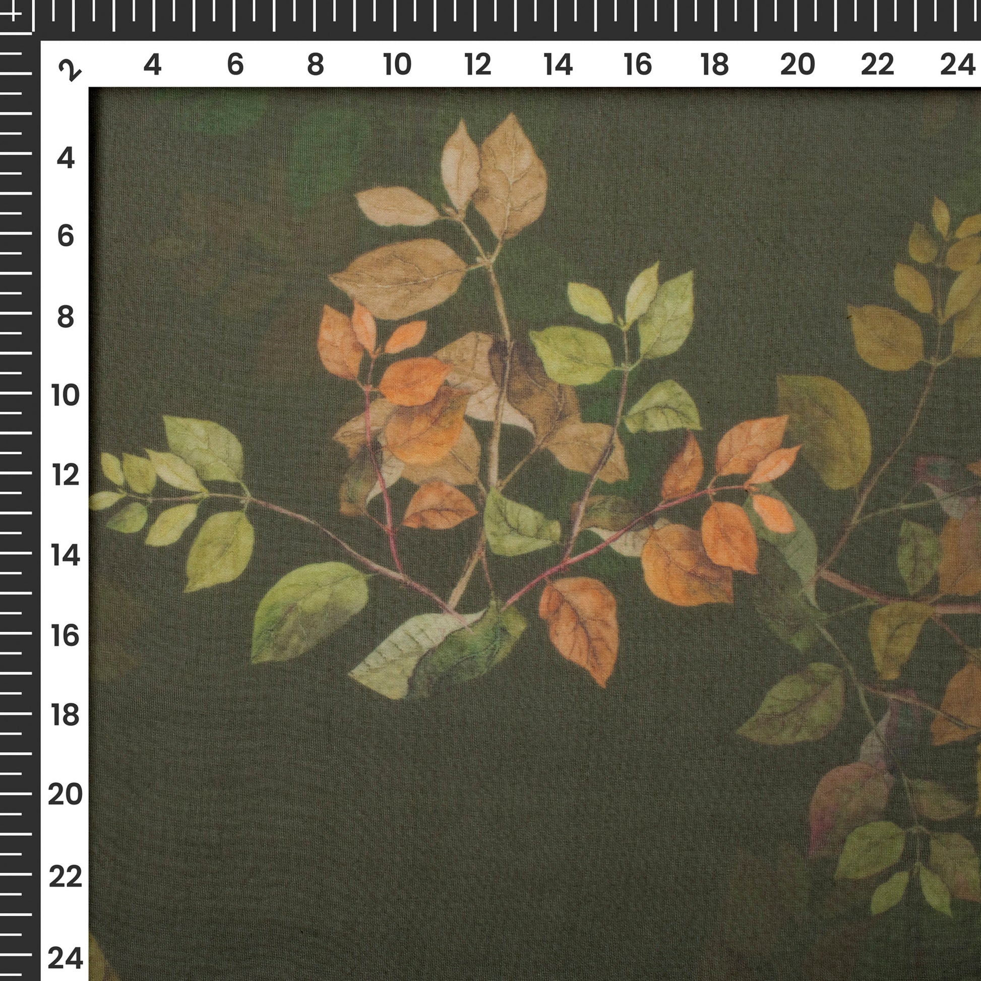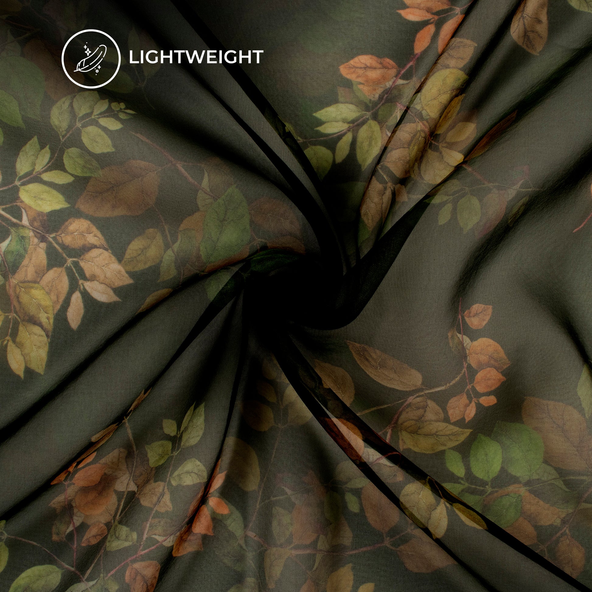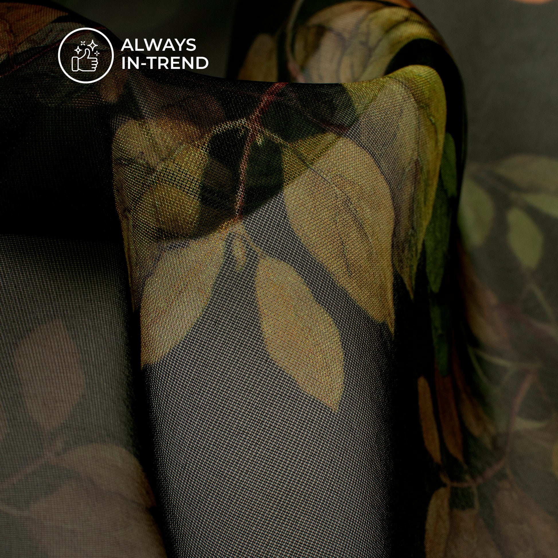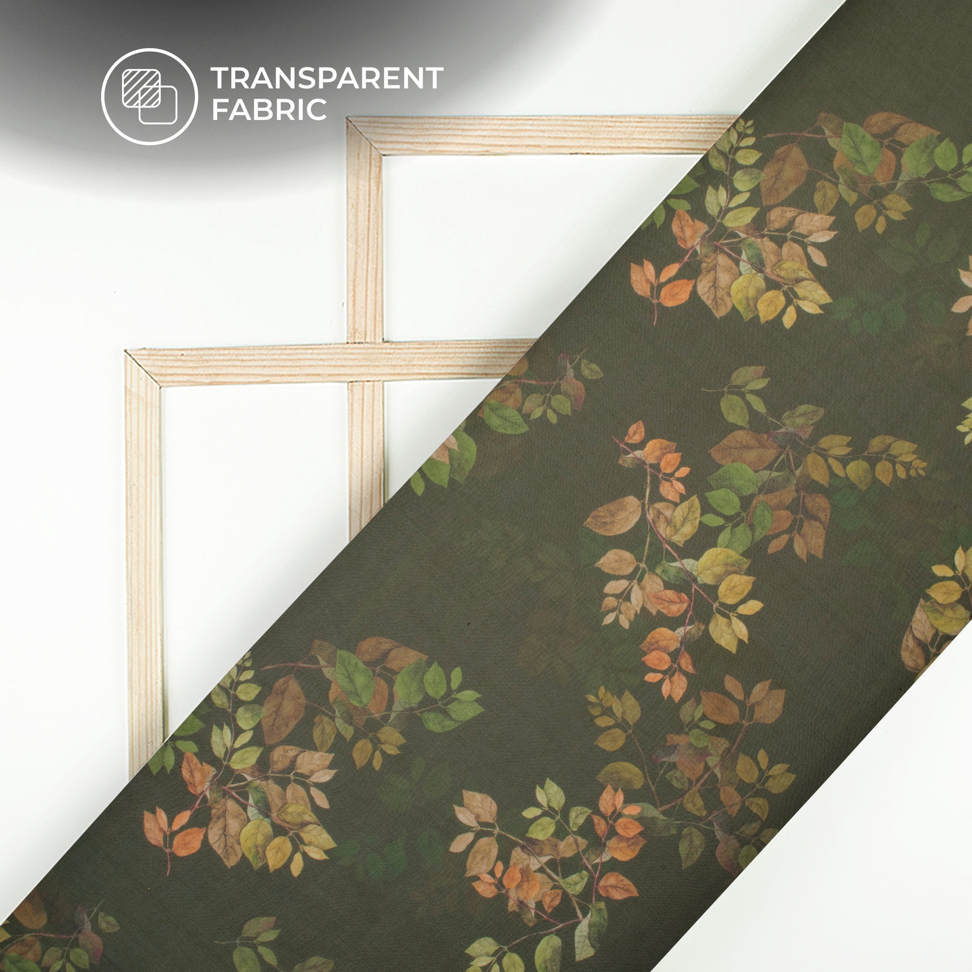 Juniper Green Leaf Digital Print Matt Organza Fabric