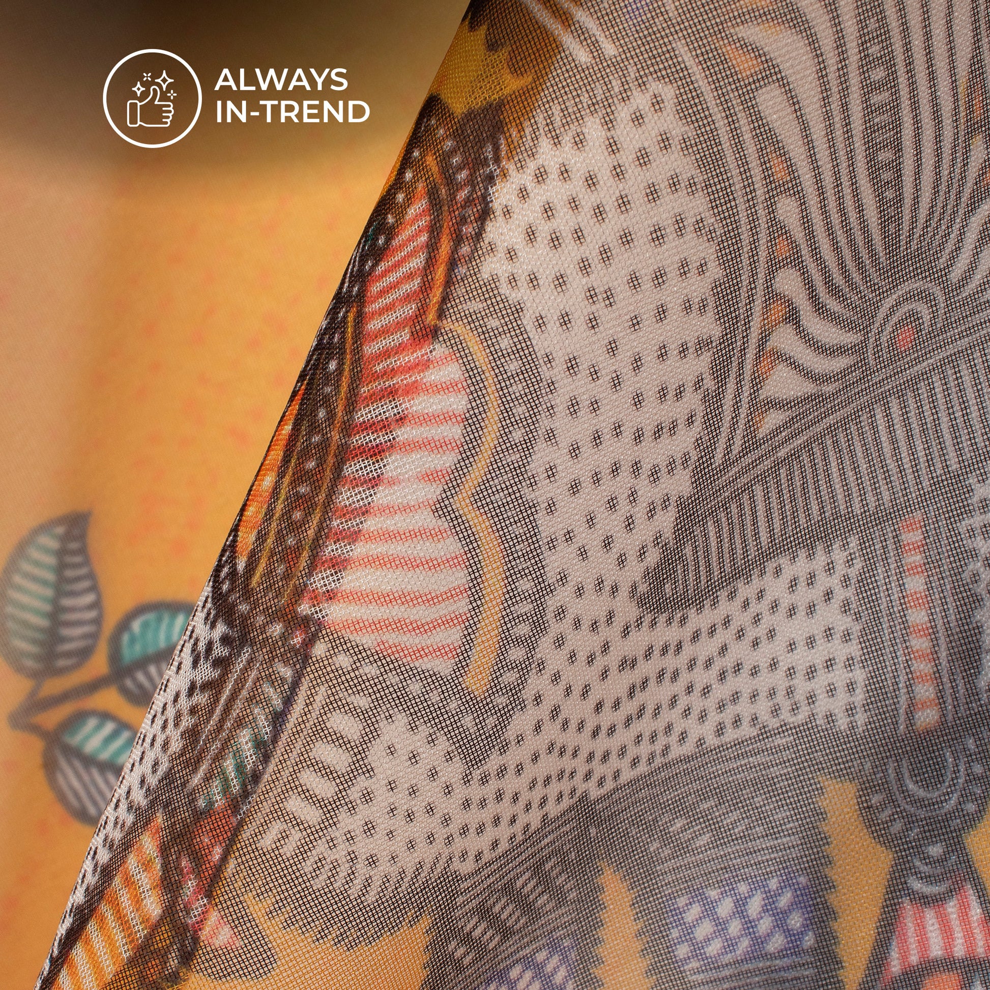 Organza fabric is a plain weave material, lightweight with a crisp hand. It is sheer, smooth, transparent, and slippery too. The fabric brings royal vibes, the textures are cool, and bring Draping quality is very clean and hence much preferable by tailors. This fabric is worth the price. It is used in making, casual wear, tops, dresses, lehengas, sarees, etc.