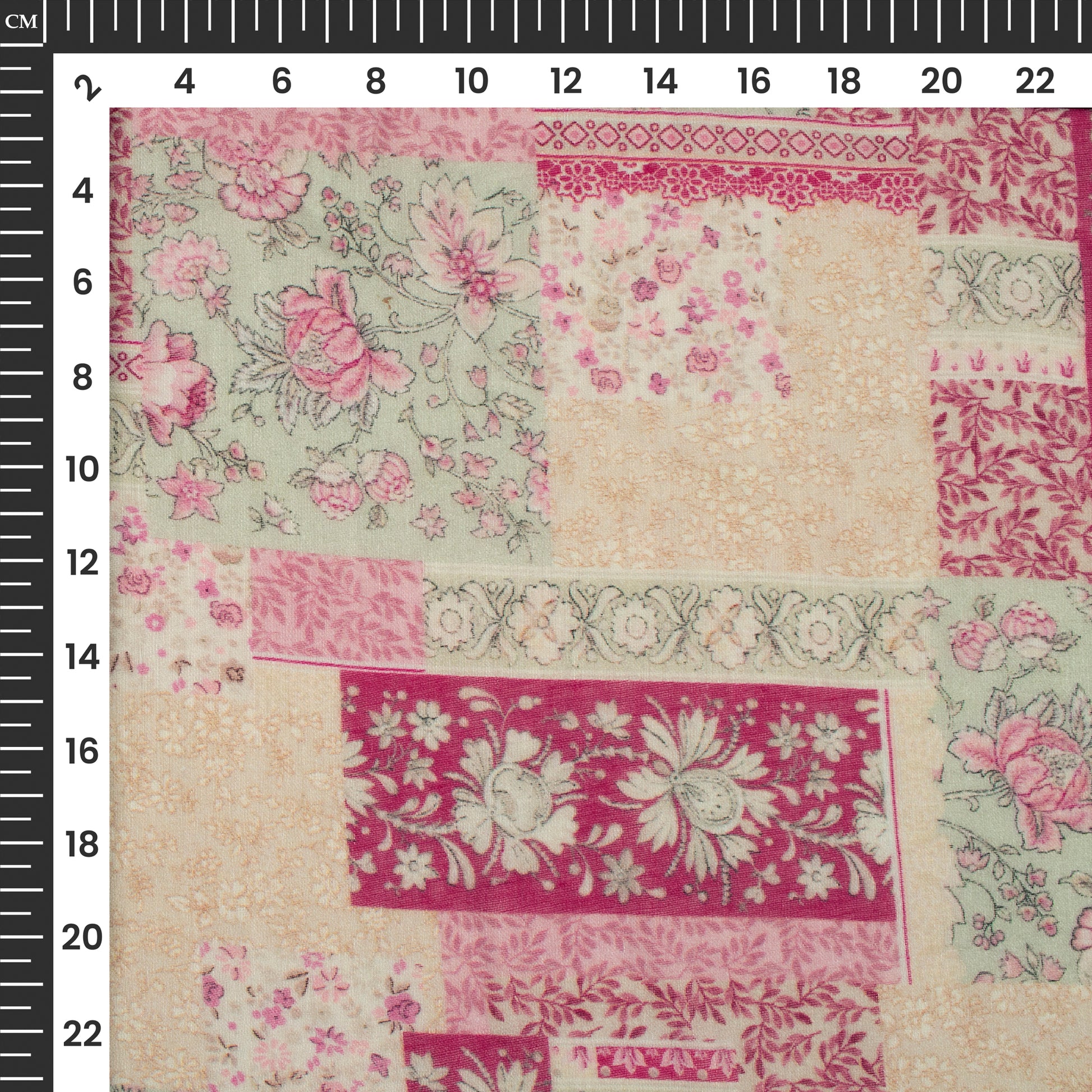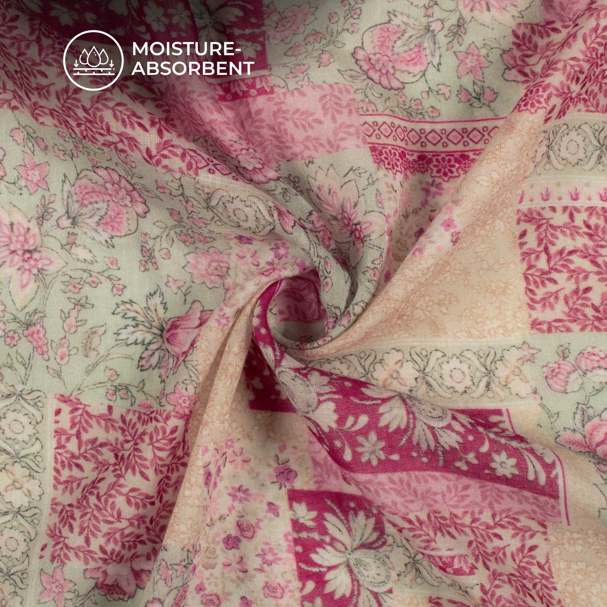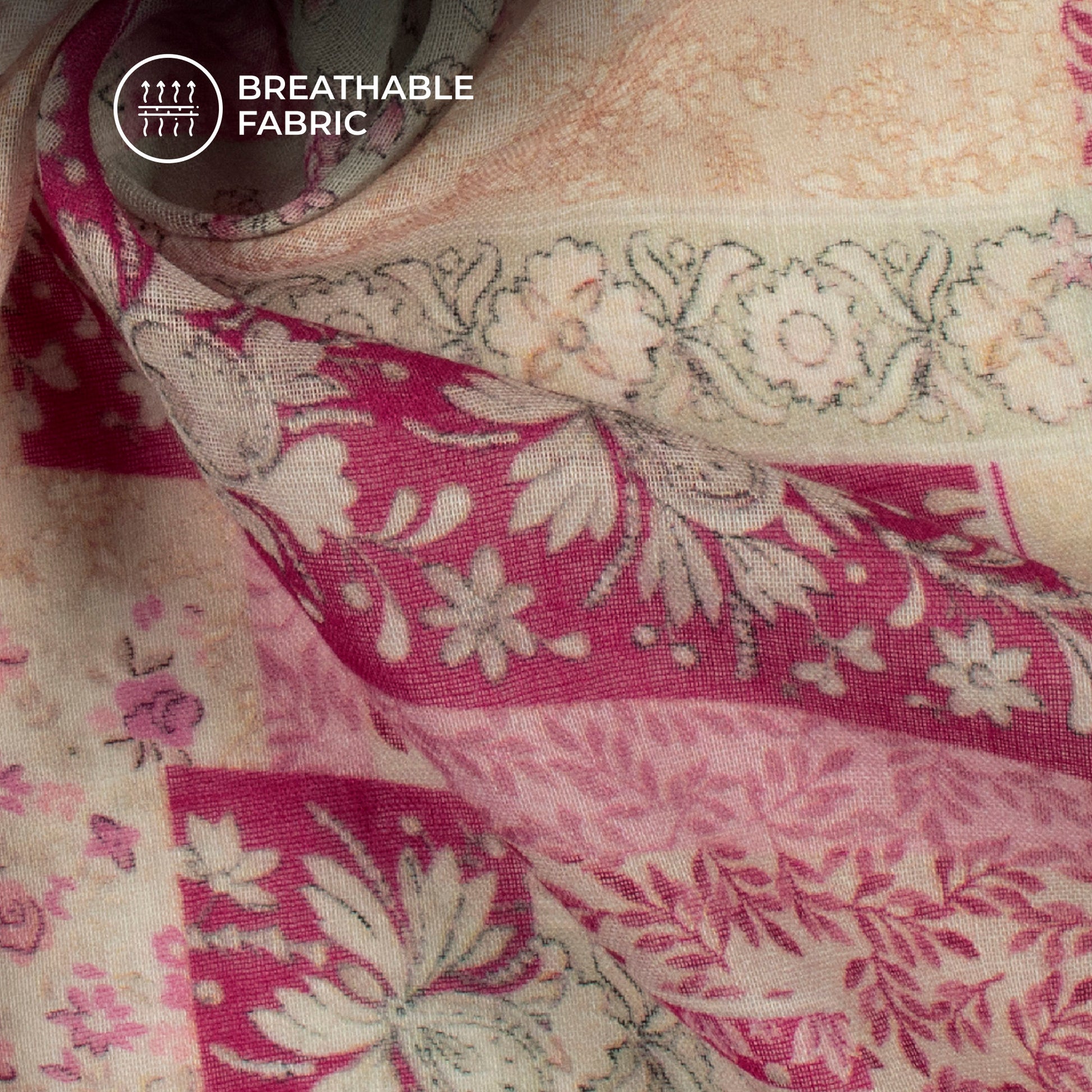 Exclusive Dark Pink And Beige Floral Digital Print Pure Cotton Mulmul Fabric