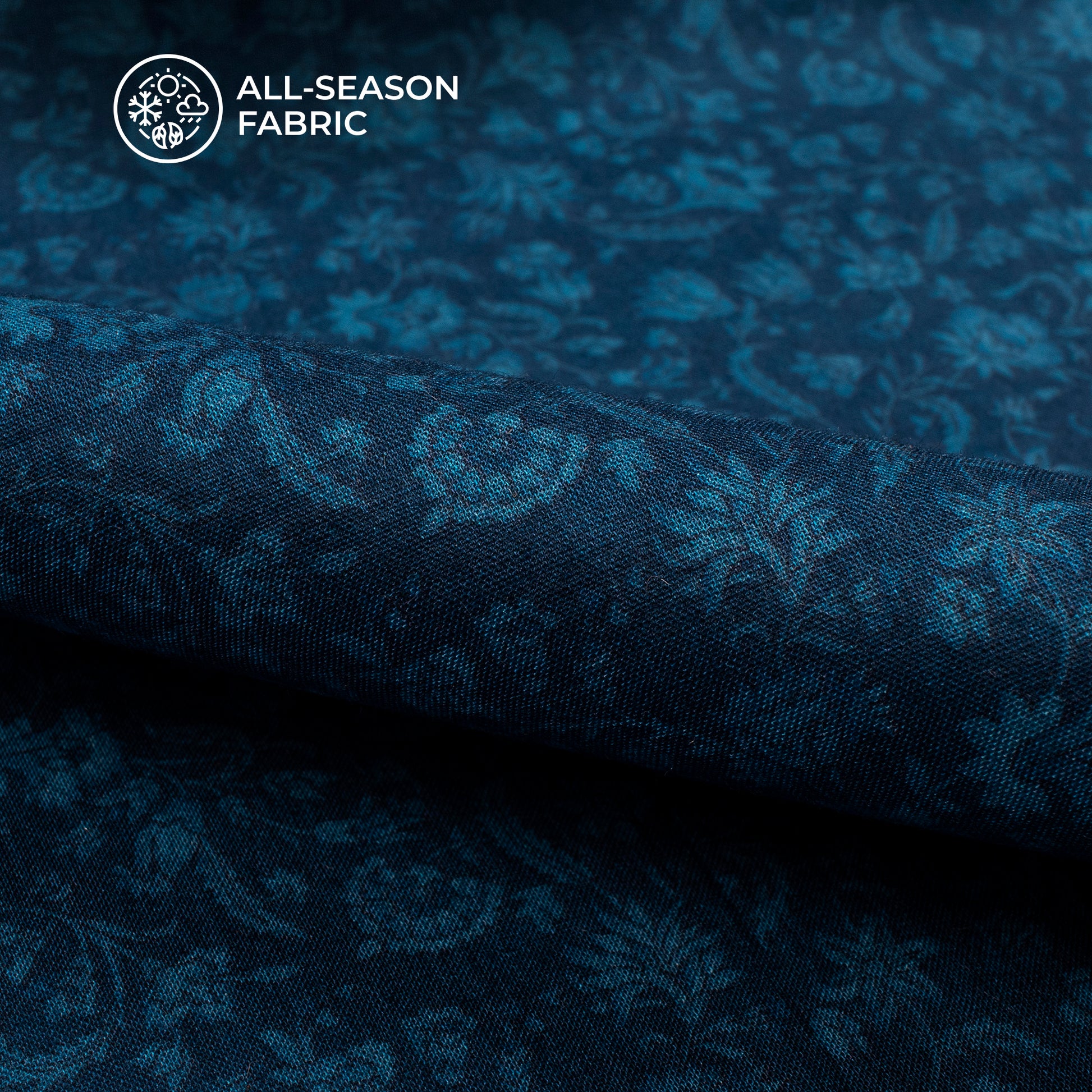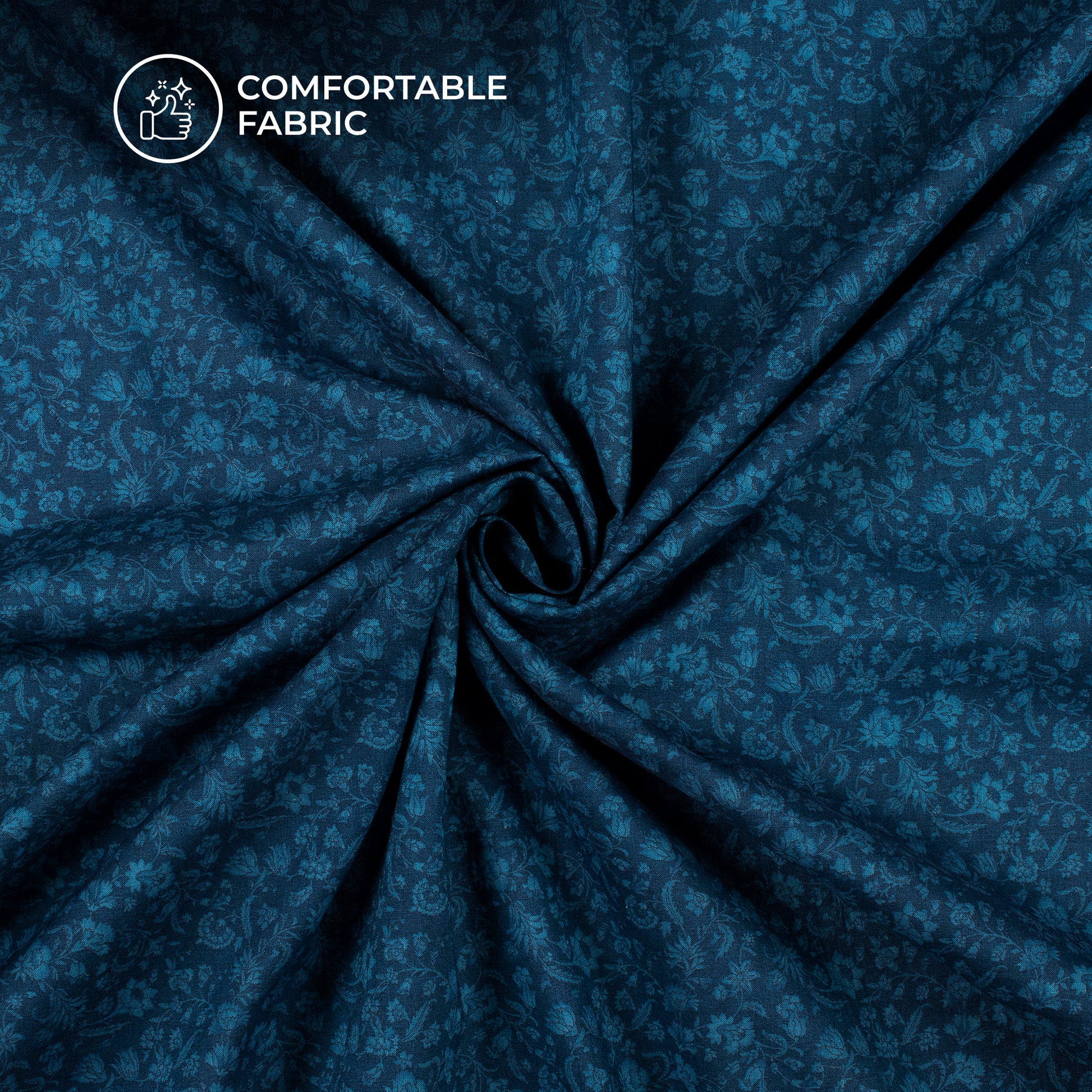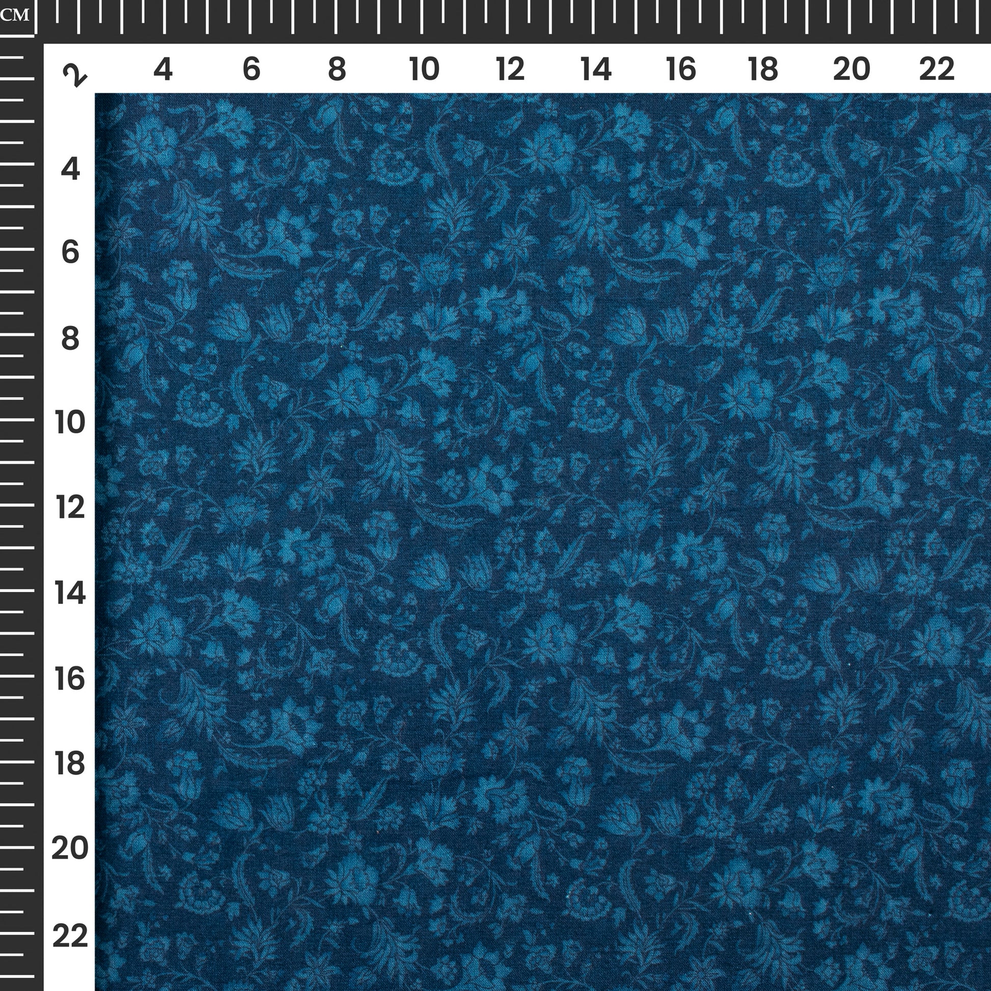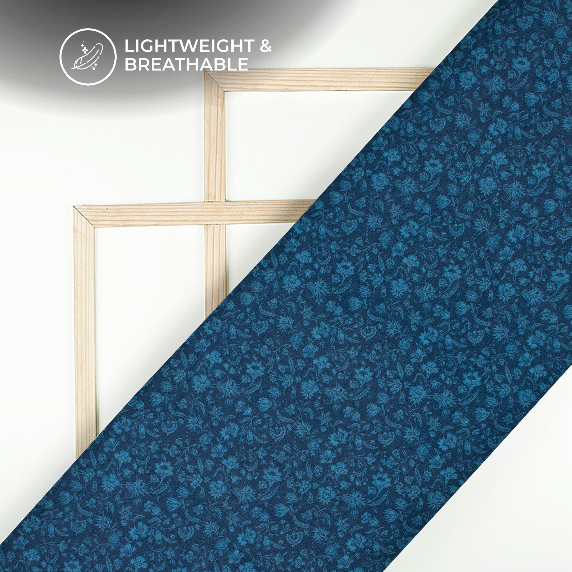 Prussian Blue Floral Digital Print Cotton Cambric Fabric