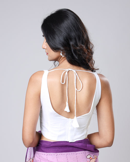 Classic Plain White Cotton Round Neck Blouse