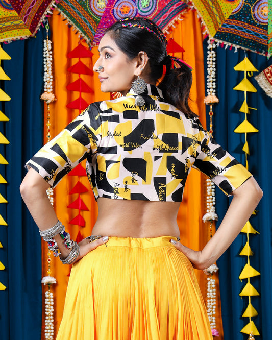 Yellow Floral Boat Neck Full Sleeve Blouse