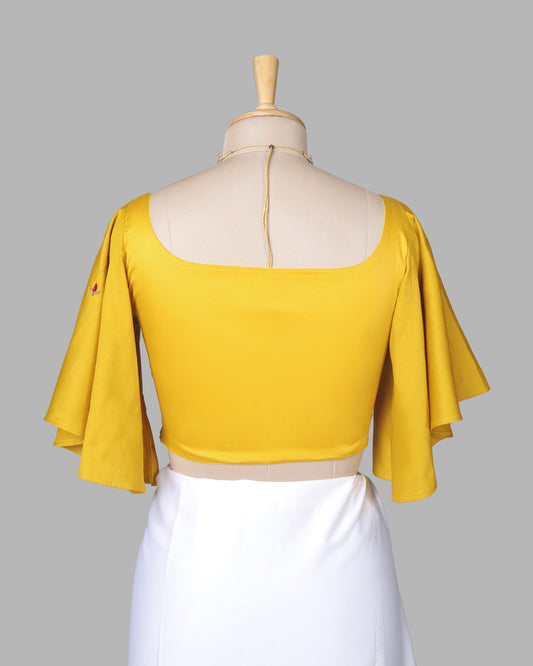Premium Pearl And Motif Hand Work Yellow Cotton Blouse Premium Pearl And Motif Hand Work Yellow Cotton Blouse