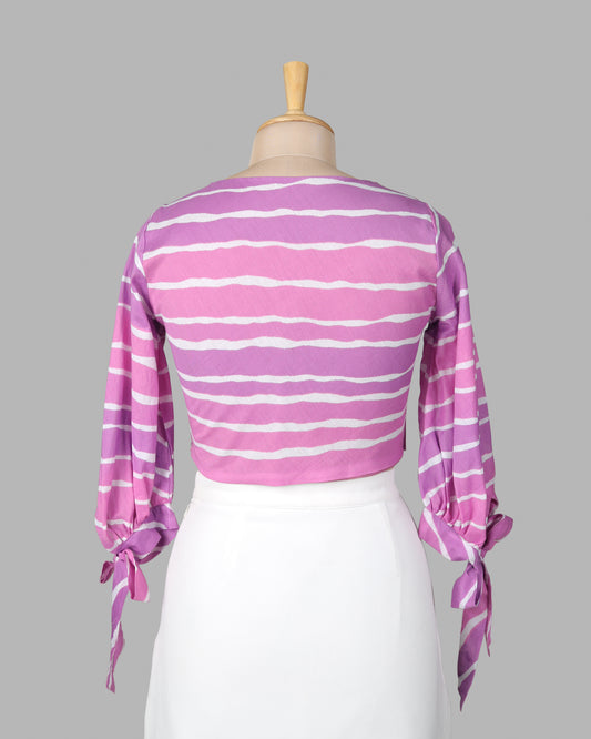 Purple Stripes Tie Up Sleeve Cotton Blouse