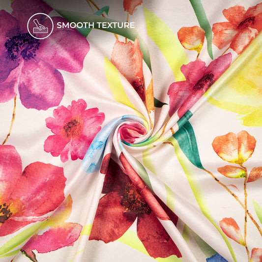 Multi Color Abstract Flower Design Digital Print Lush Satin Fabric Multi Color Abstract Flower Design Digital Print Lush Satin Fabric