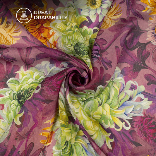 -7% offAttractive Green & Purple Floral Digital Print Crepe Silk Fabric Attractive Green & Purple Floral Digital Print Crepe Silk Fabric