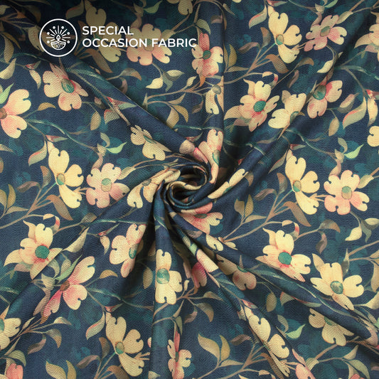 Vintage Floral Digital Print Uppada Silk Fabric For DIY Fashion And Boutique Brands Vintage Floral Digital Print Uppada Silk Fabric For DIY Fashion And Boutique Brands