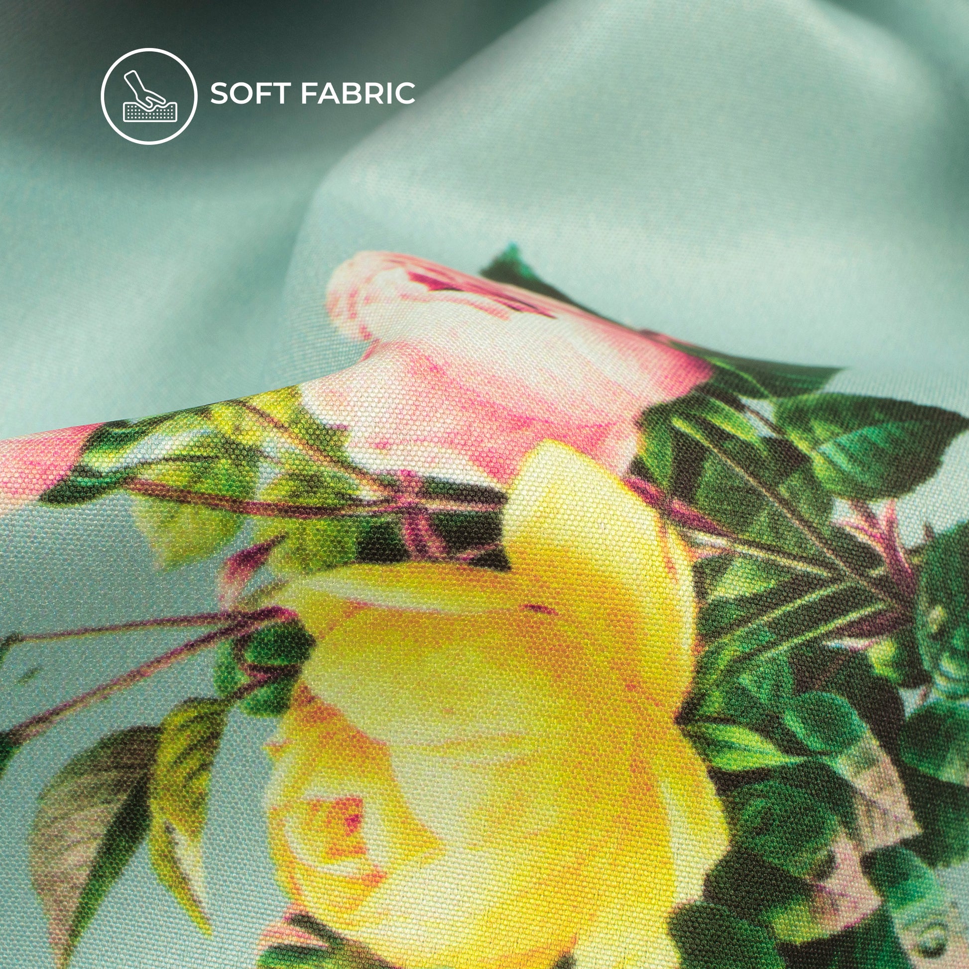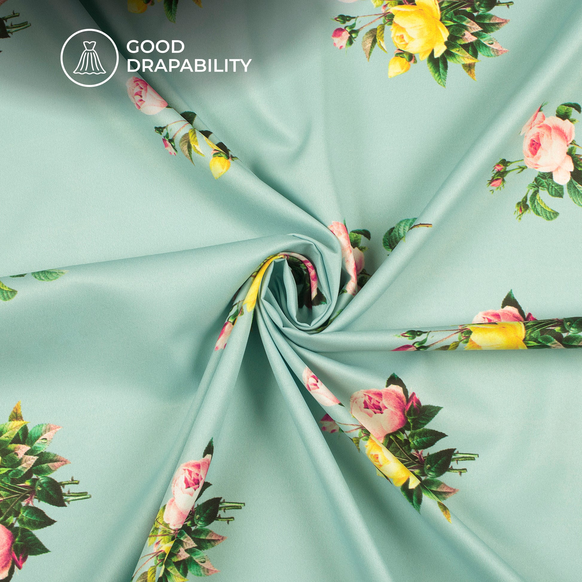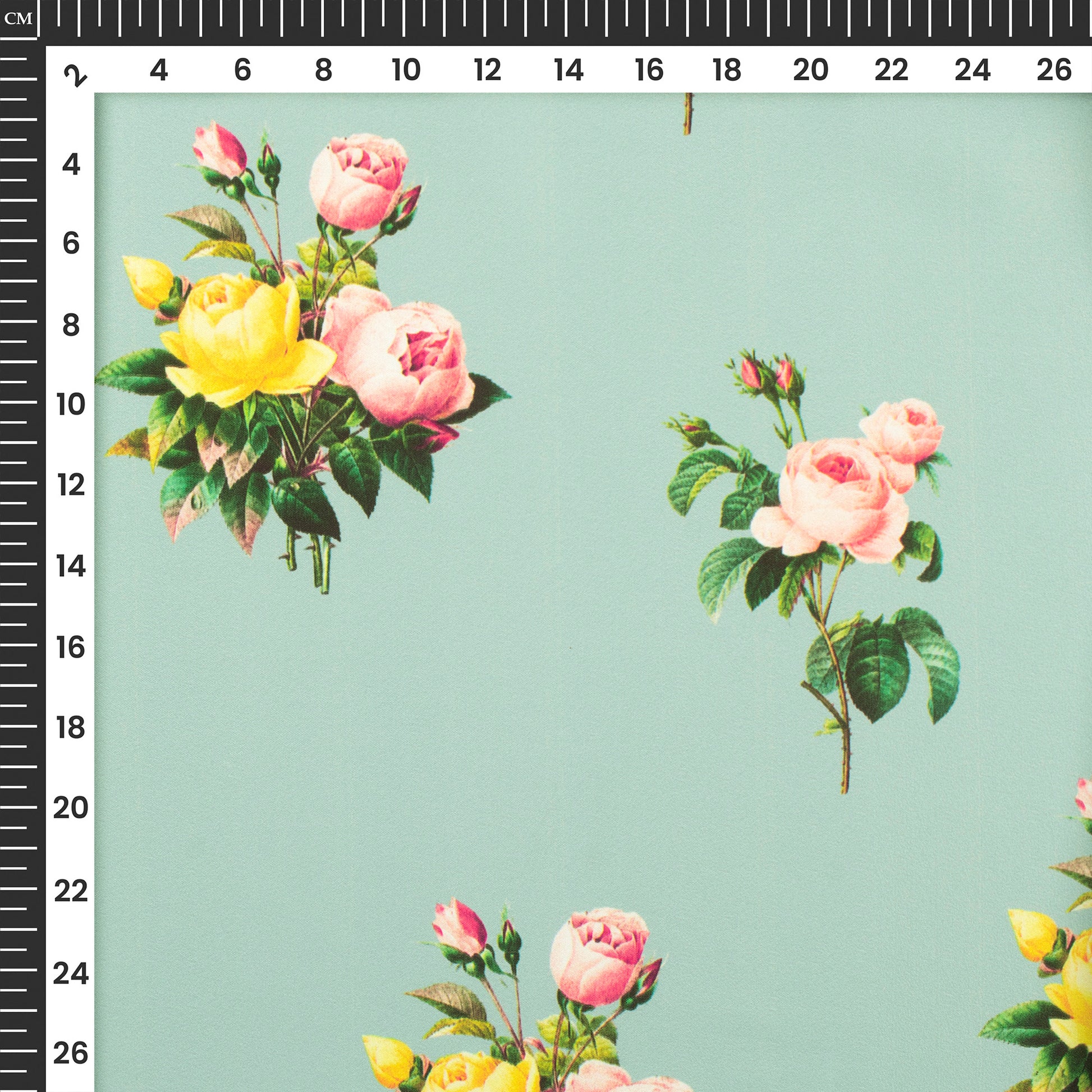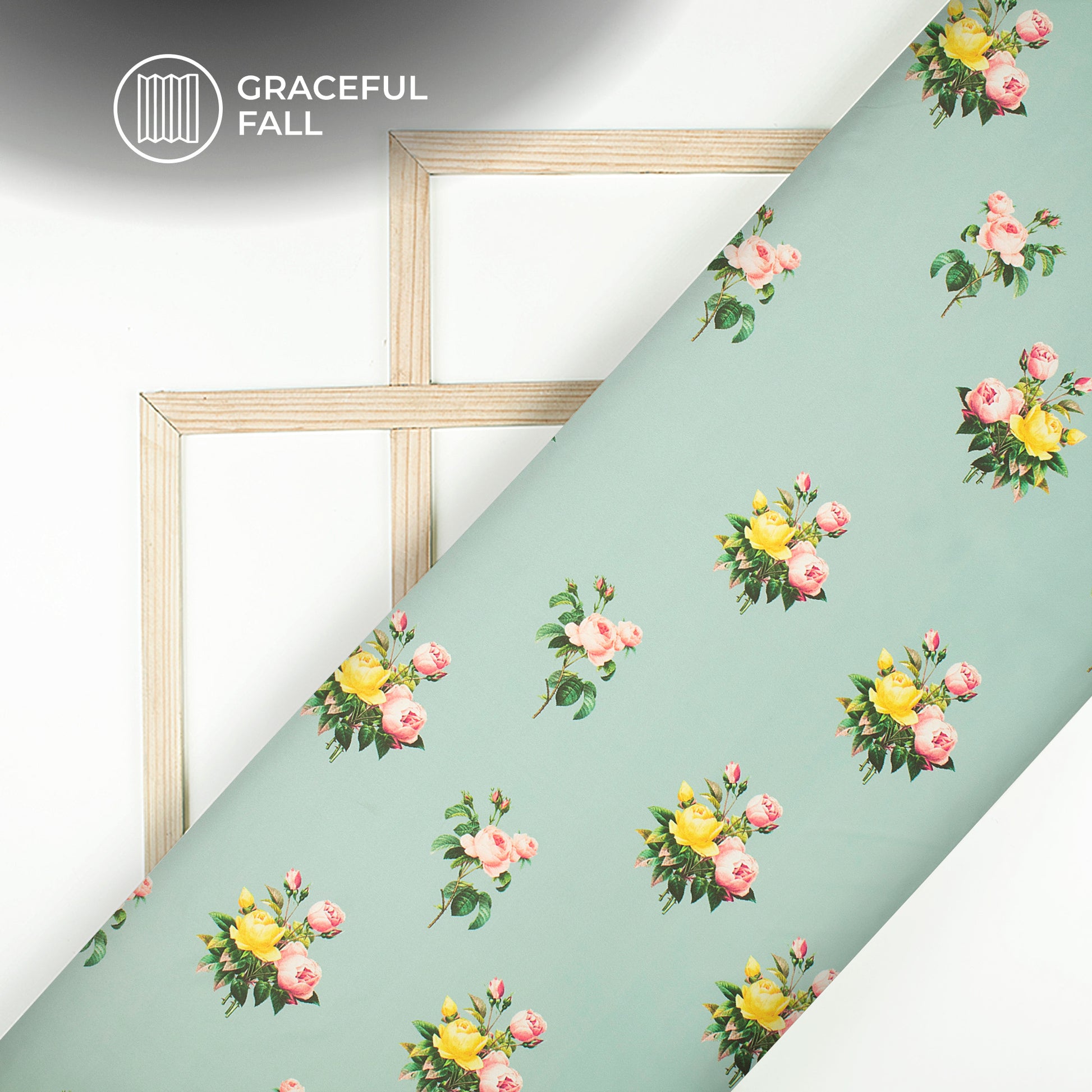 Ash Gray Floral Floral Digital Print Butter Crepe Fabric