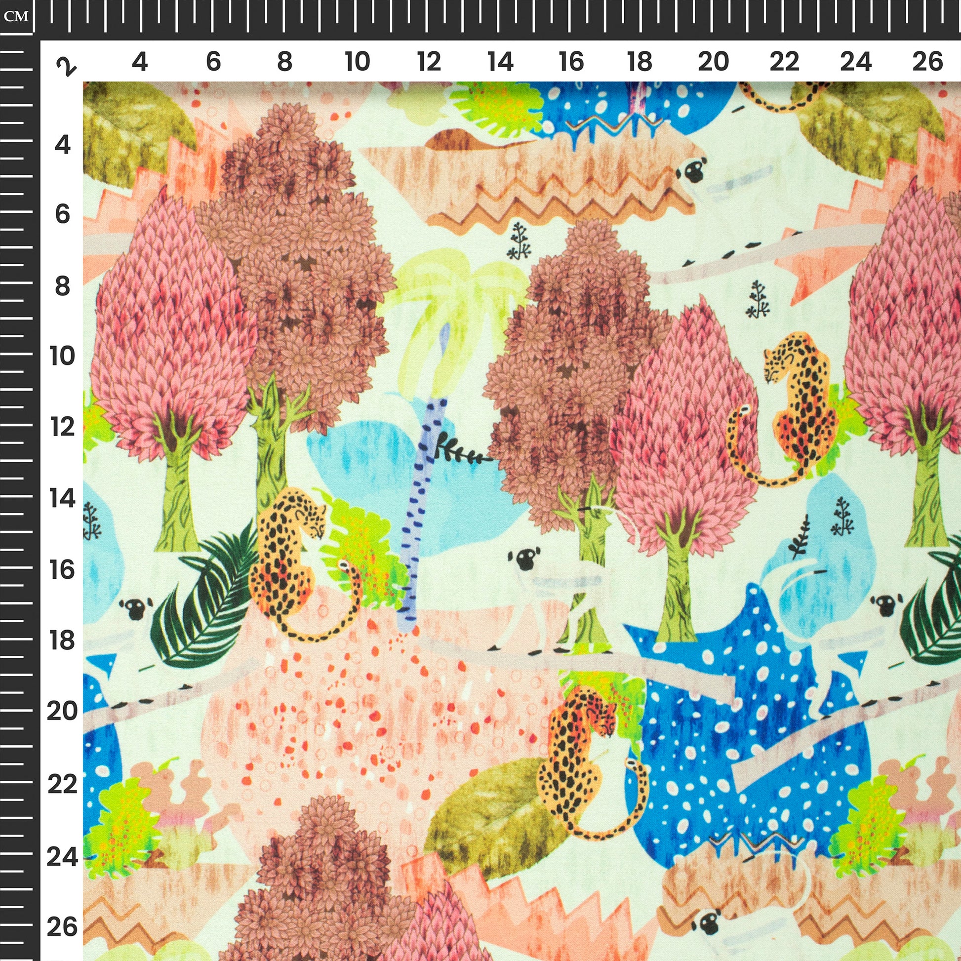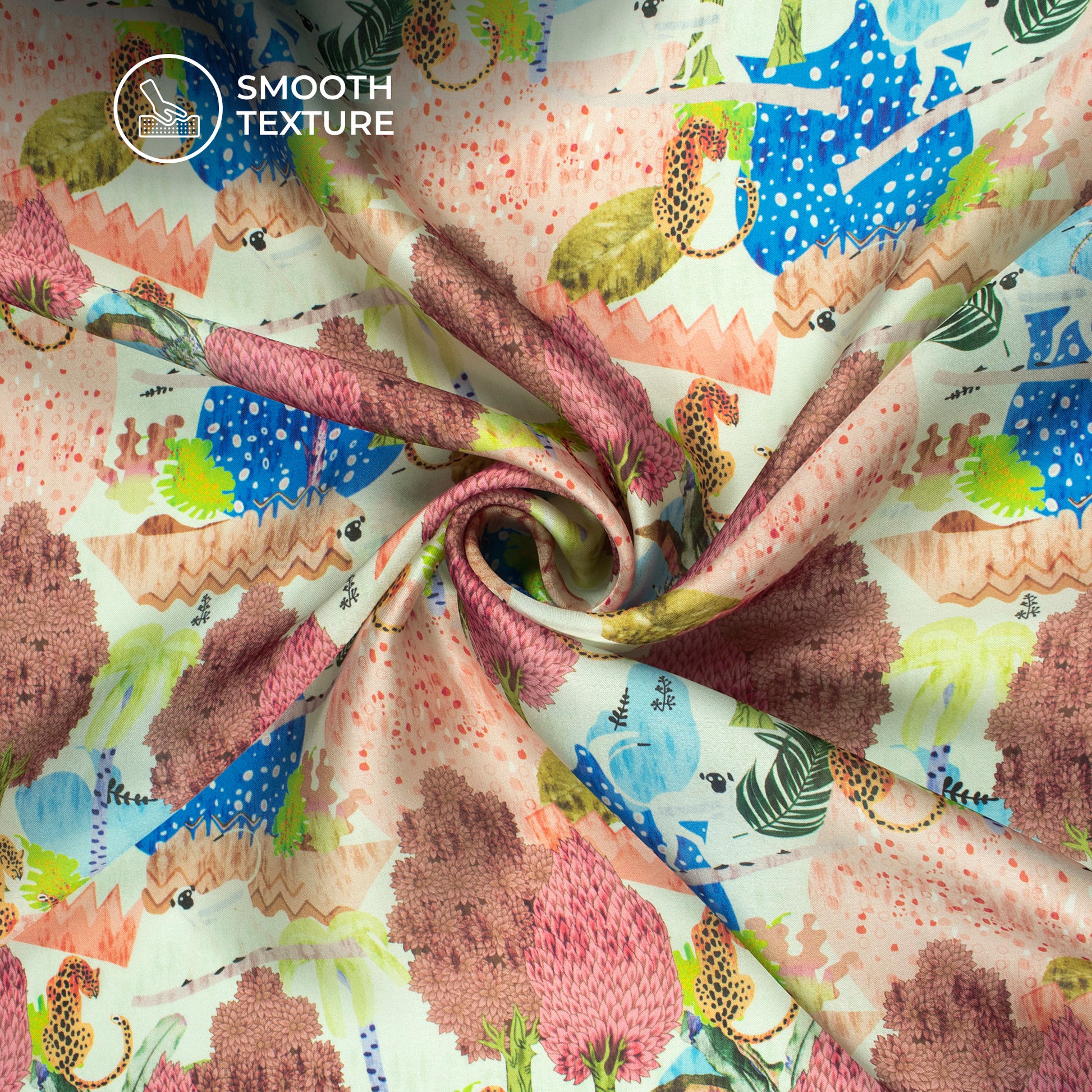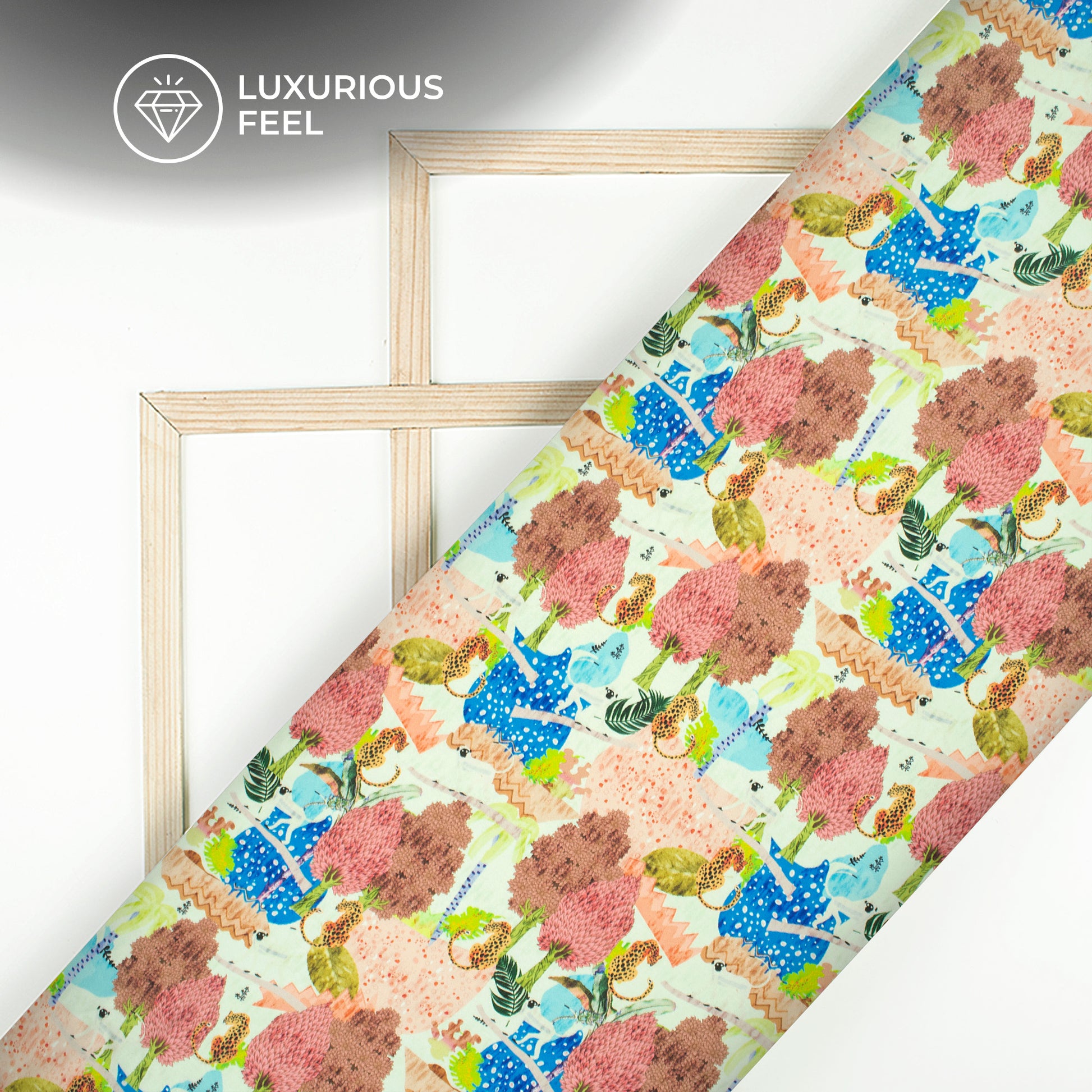Attractive Madhubani Digital Print Georgette Satin Fabric