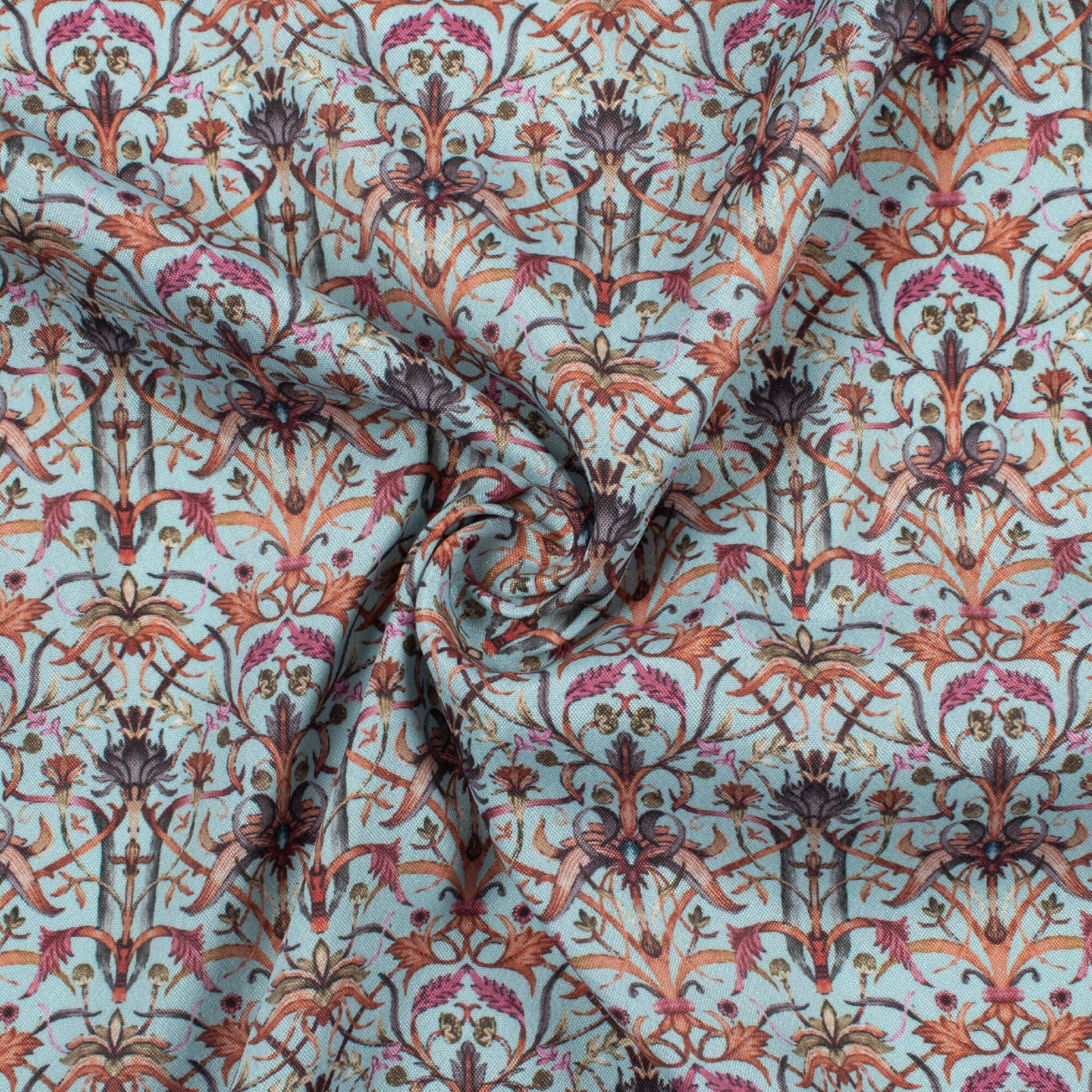 Baby Blue And Red Traditional Pattern Digital Print Crepe Silk Fabric