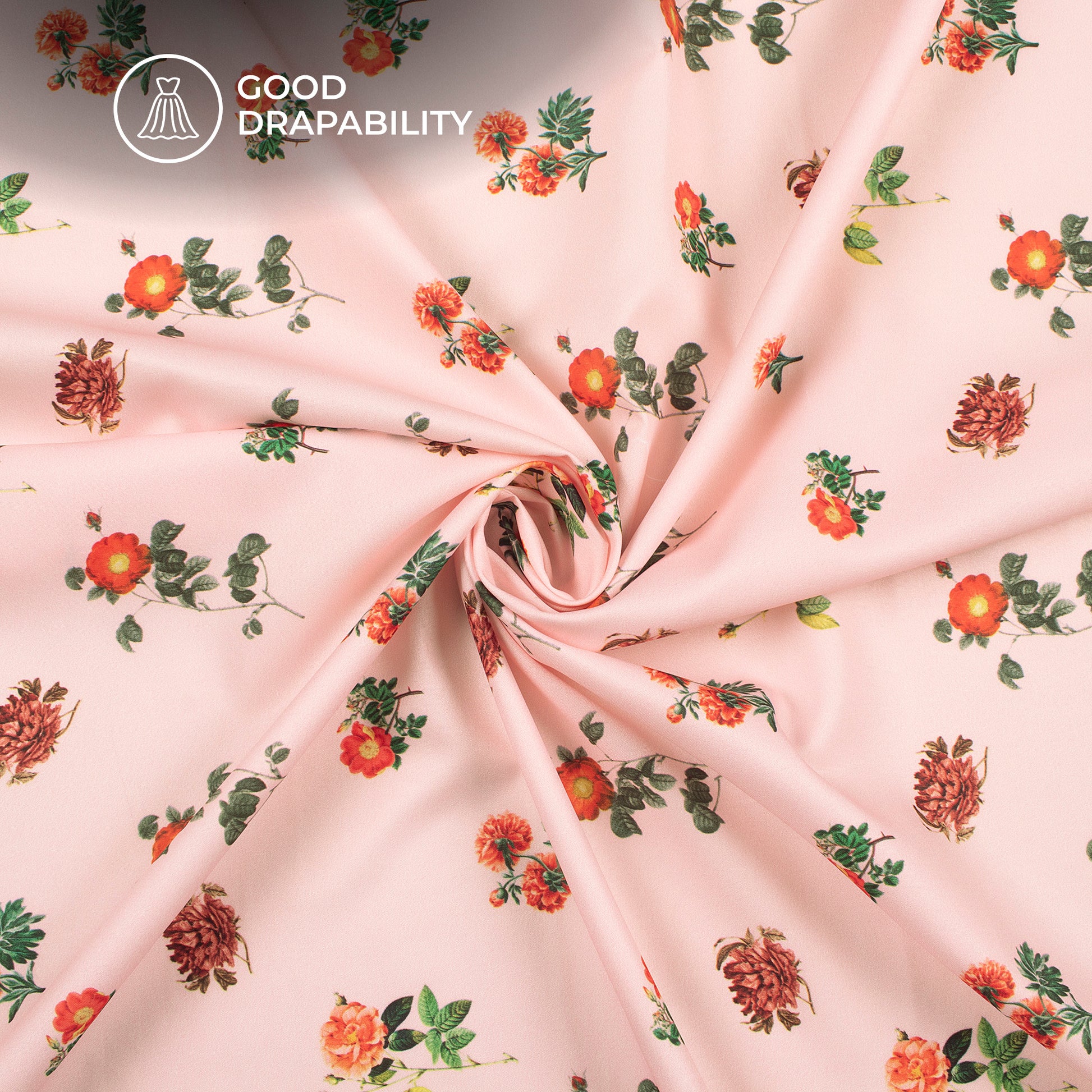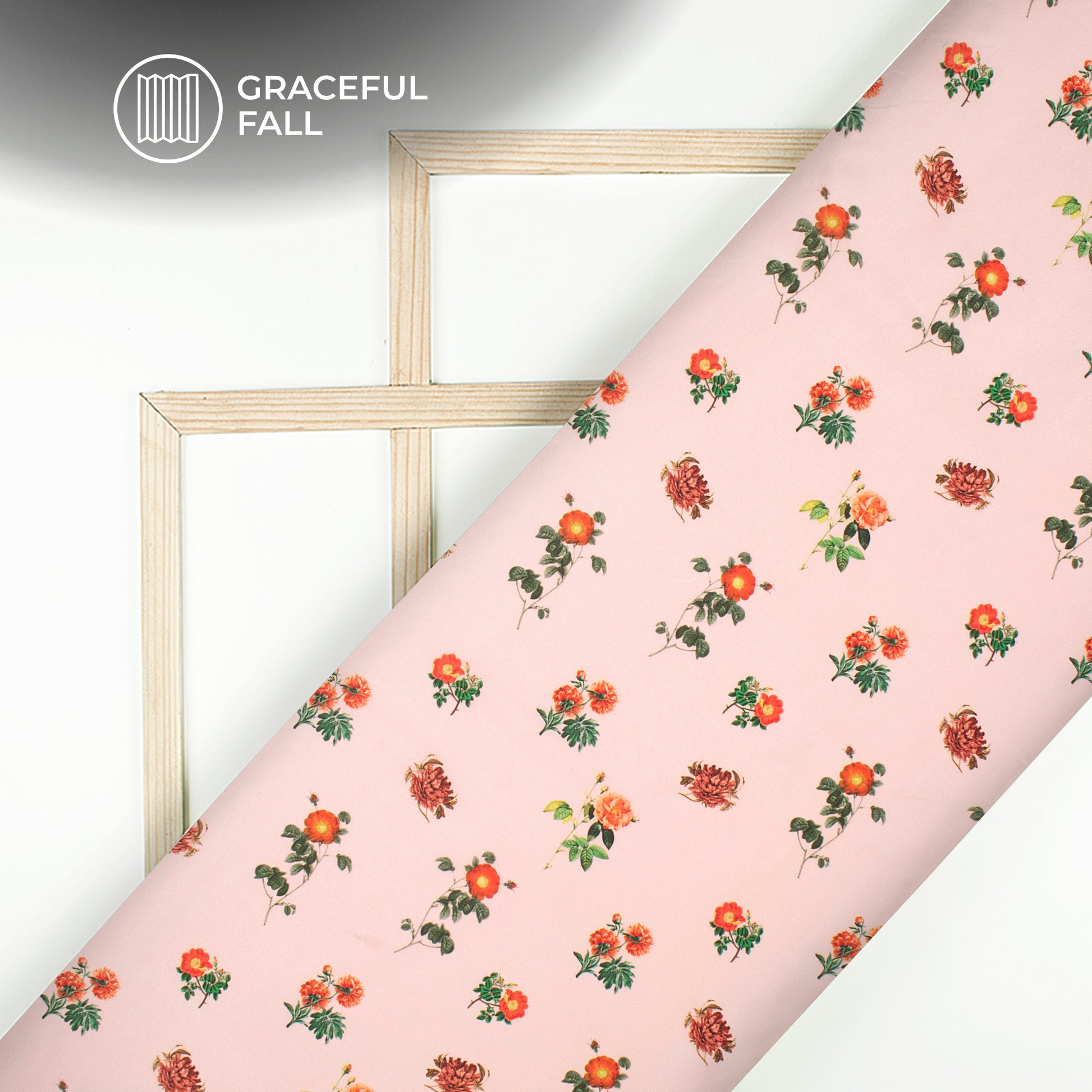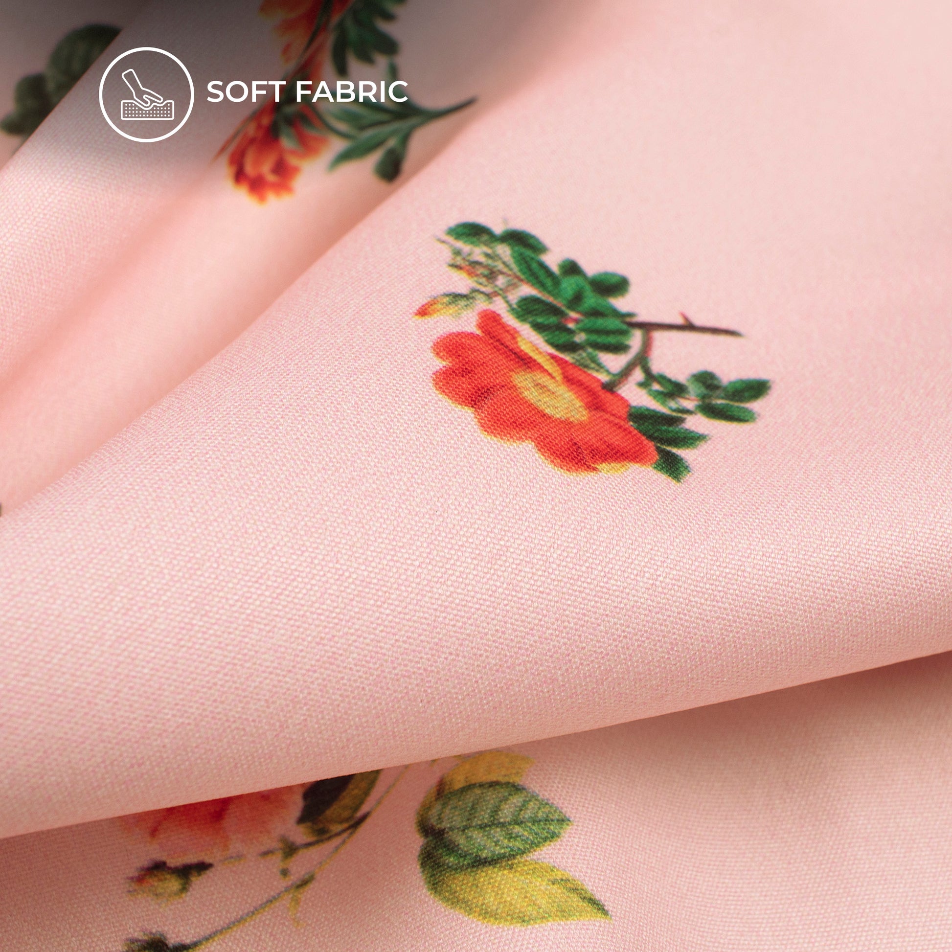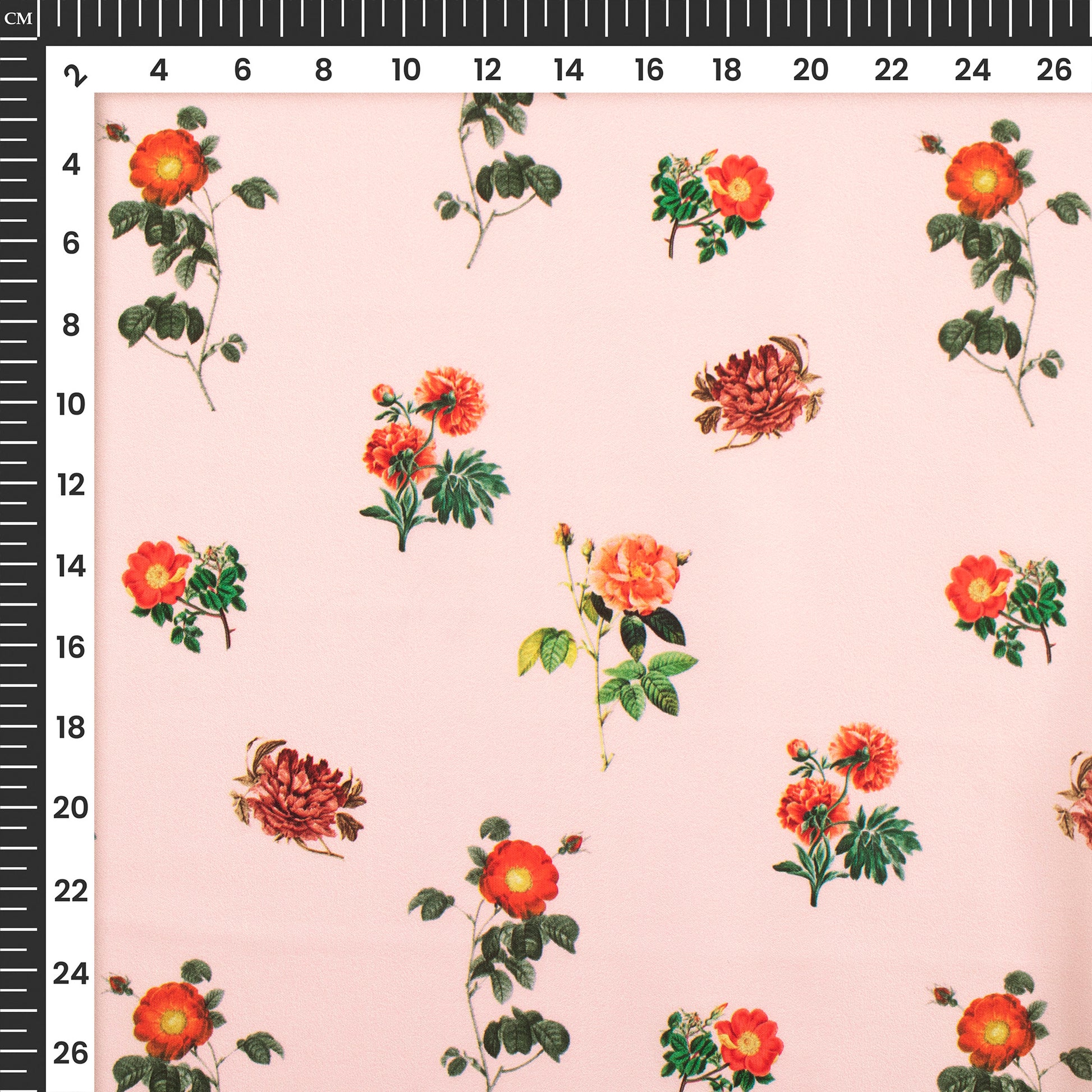 Baby Pink Floral Digital Print Butter Crepe Fabric