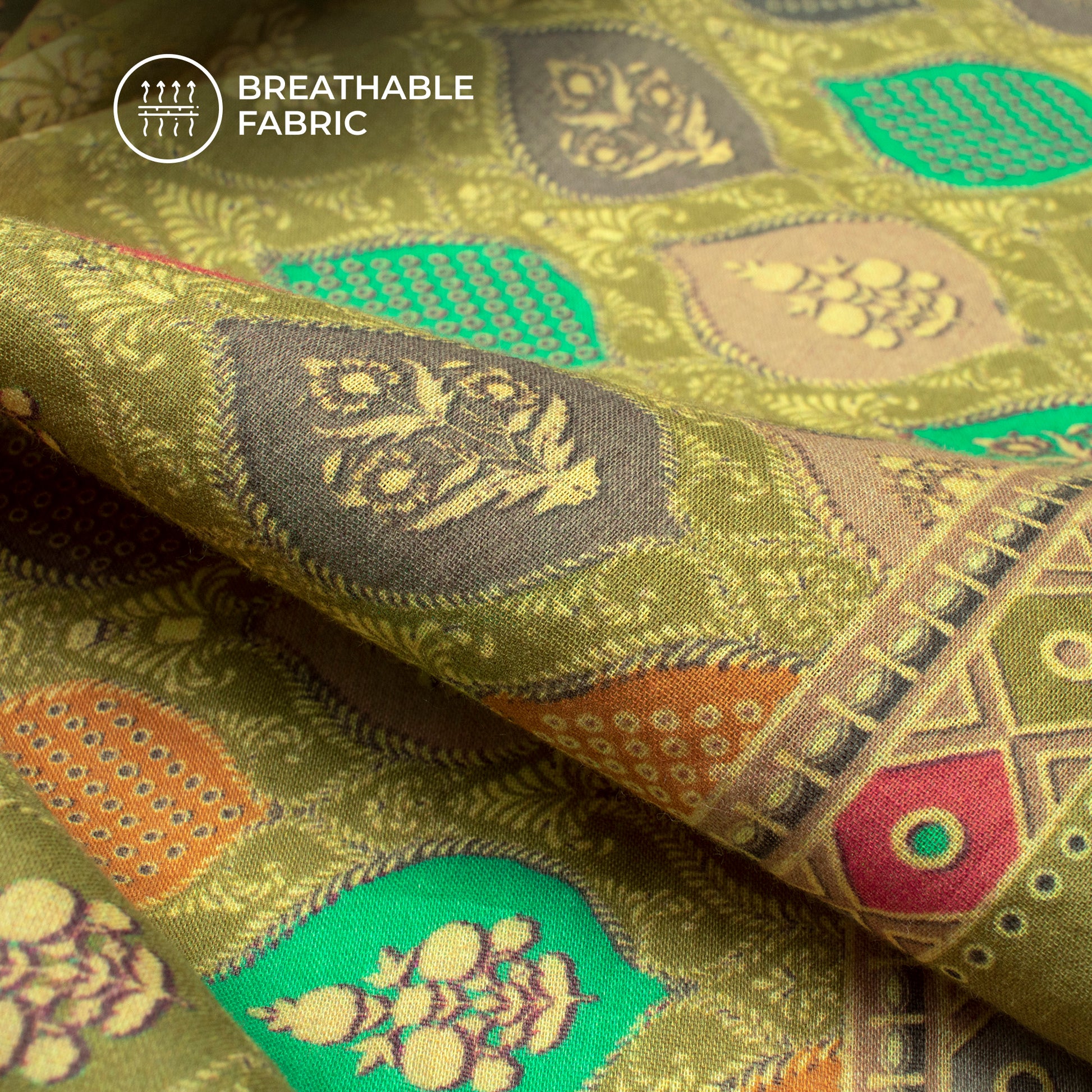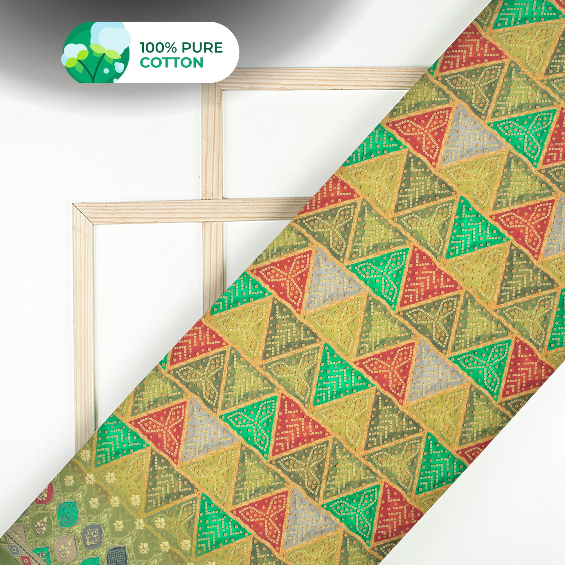 Bandhani Bloom Drop Digital Print Cotton Mulmul Fabric, Seamless And Rare