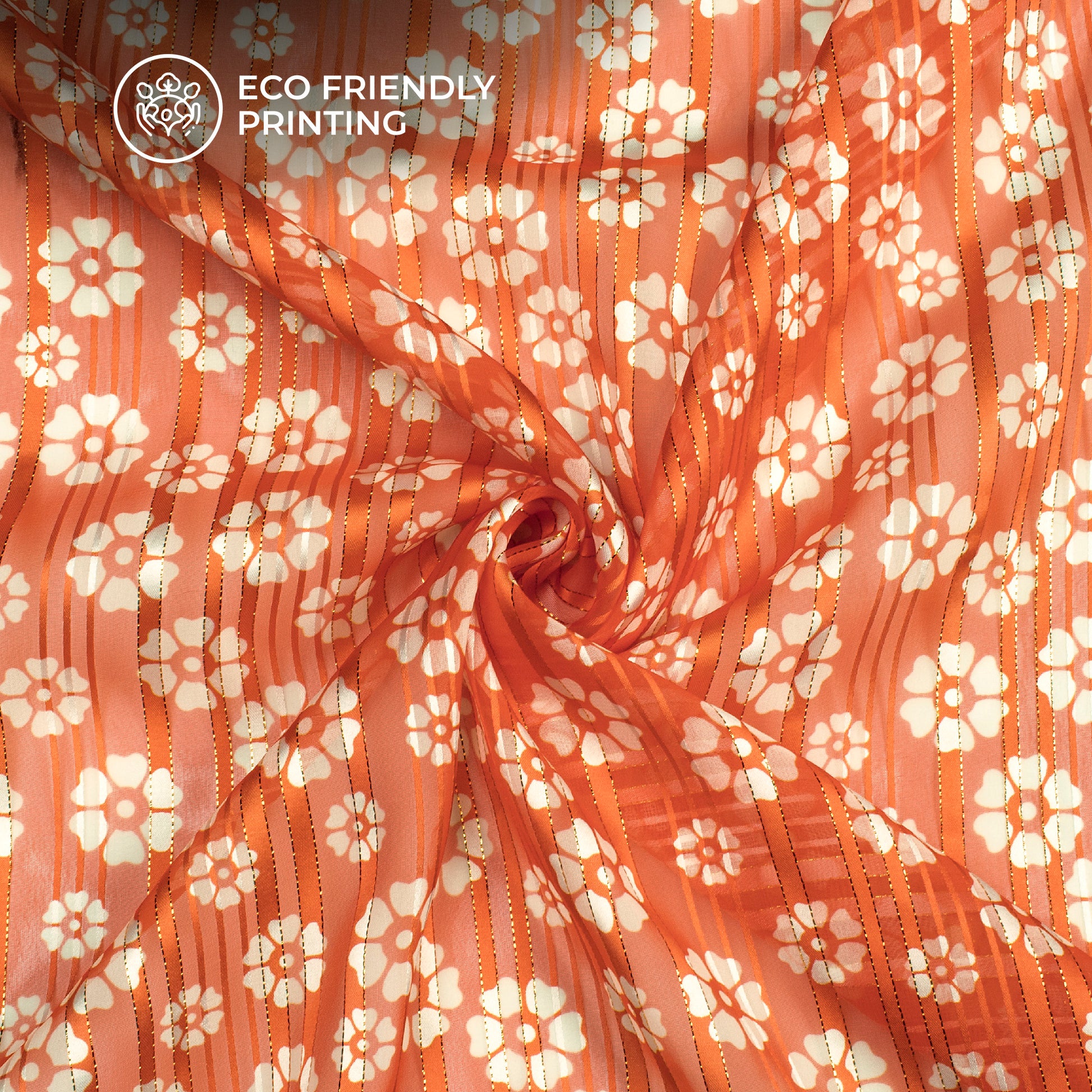 Beautiful Lovely Floral Digital Print Golden Lurex Georgette Fabric