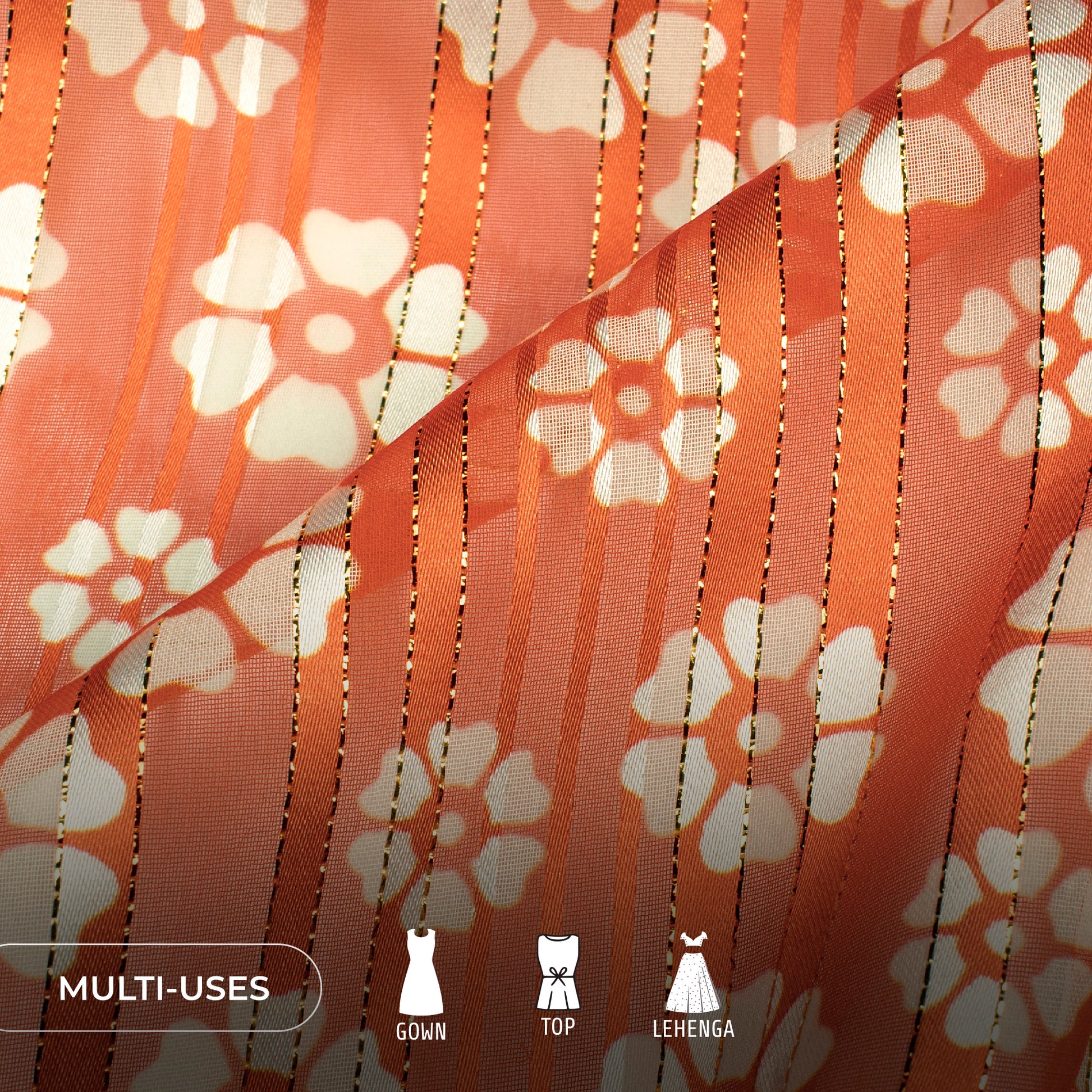 Experience luxury with our Golden Lurex Georgette Fabric. This versatile fabric is perfect for any occasion, offering a touch of glamour and sophistication. Made with the highest quality materials, our fabric is guaranteed to elevate your style.