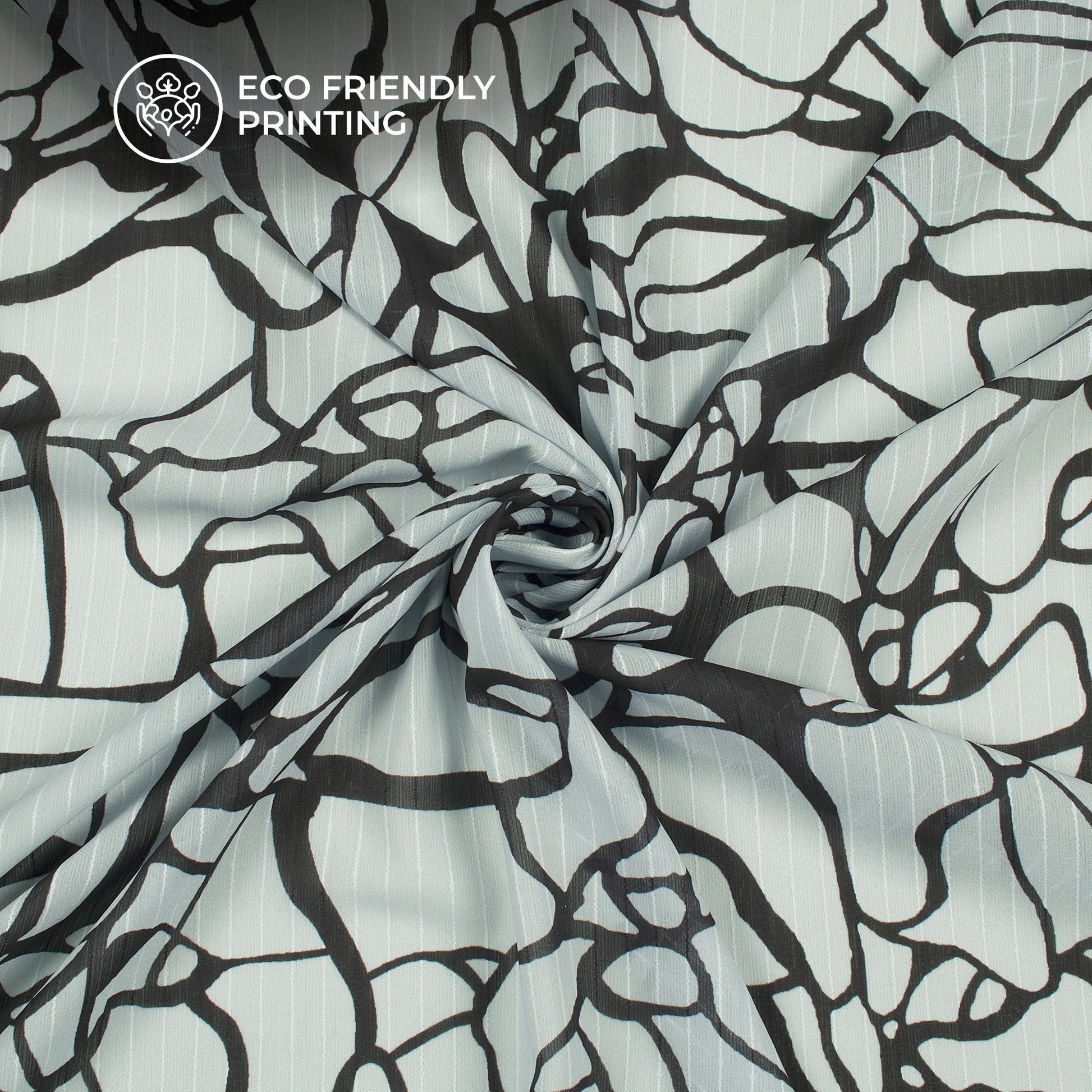 Black Abstract Digital Print Chiffon Sparkle Fabric