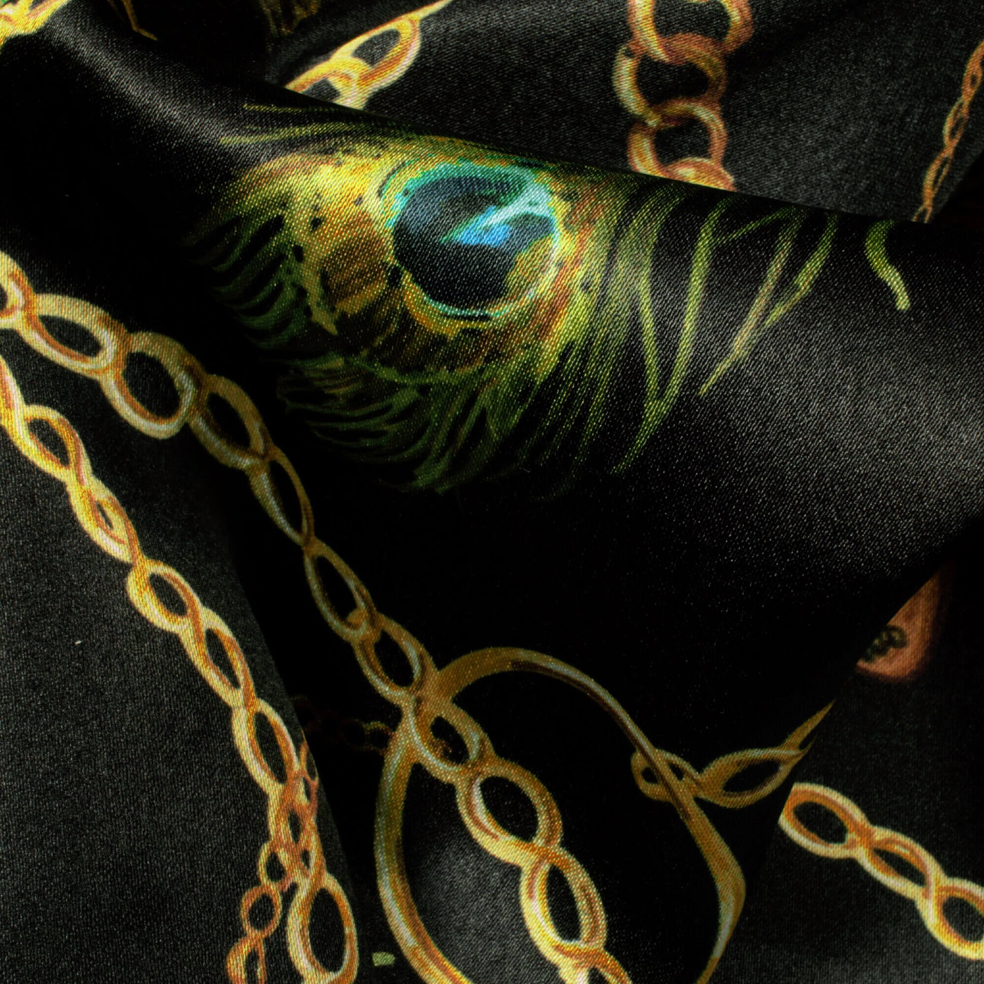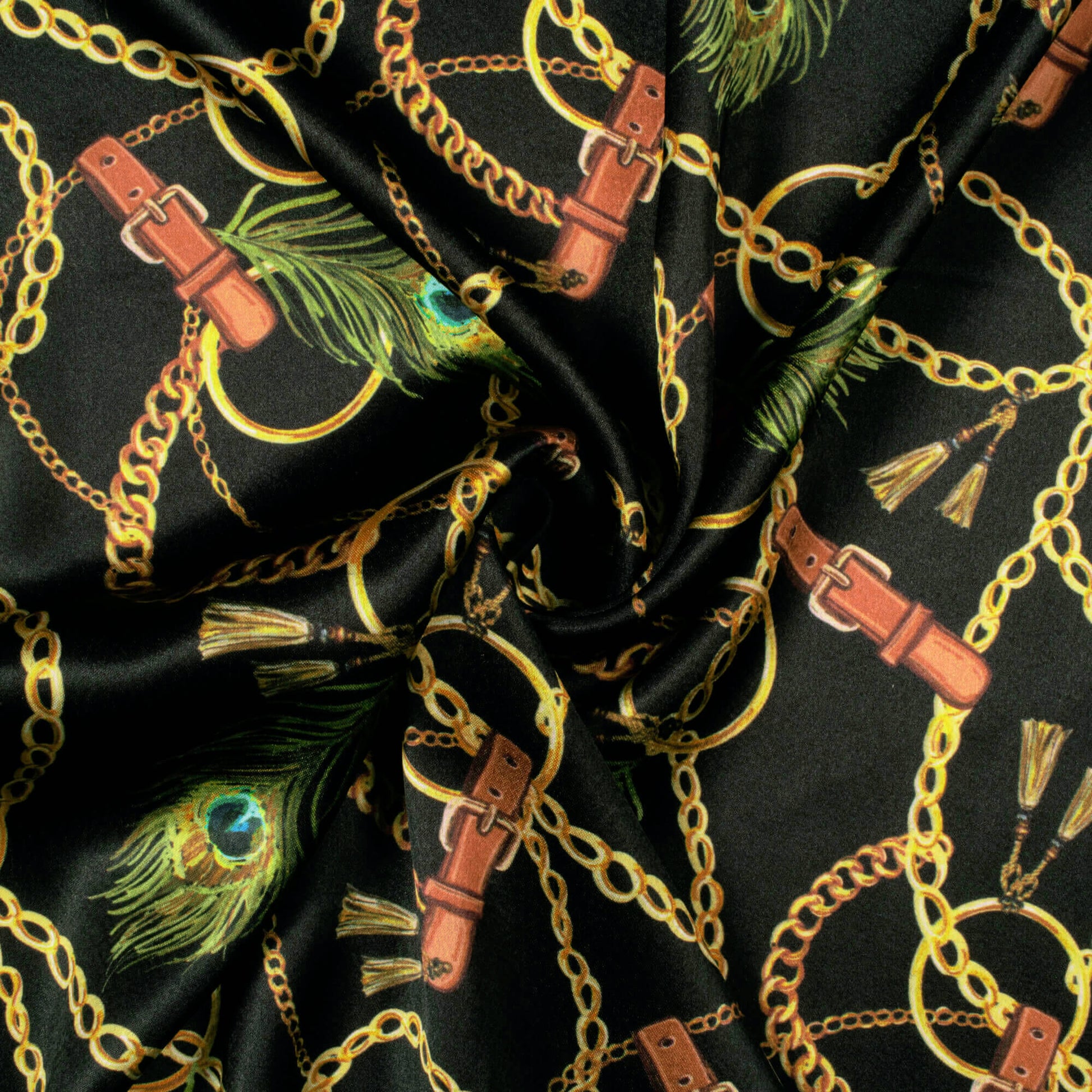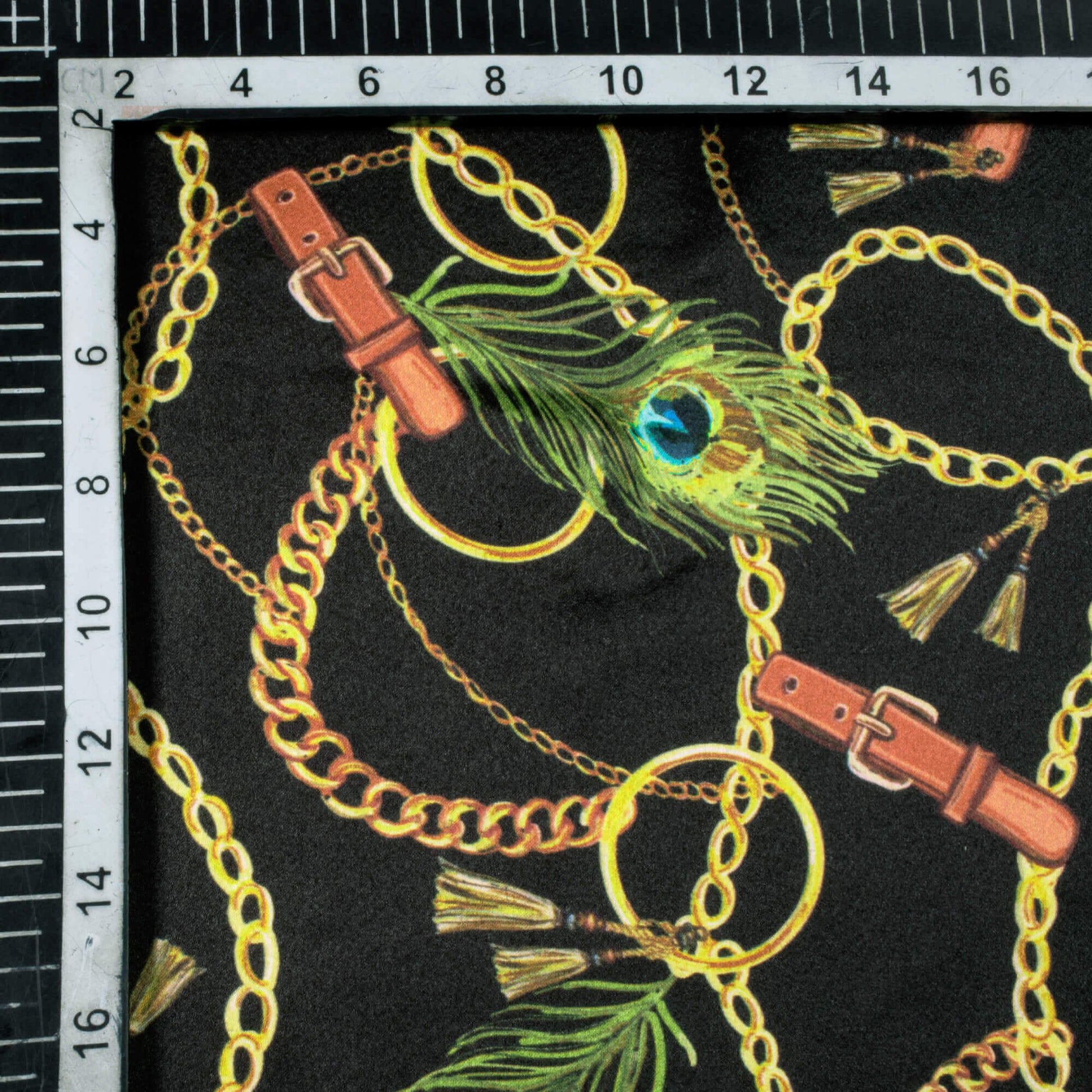 Black And Gold Yellow Chain Pattern Digital Print Japan Satin Fabric
