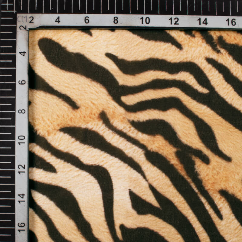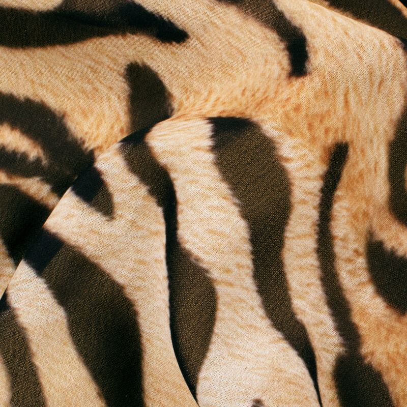 Black And Pastle Peach Tiger Animal Digital Print Georgette Fabric