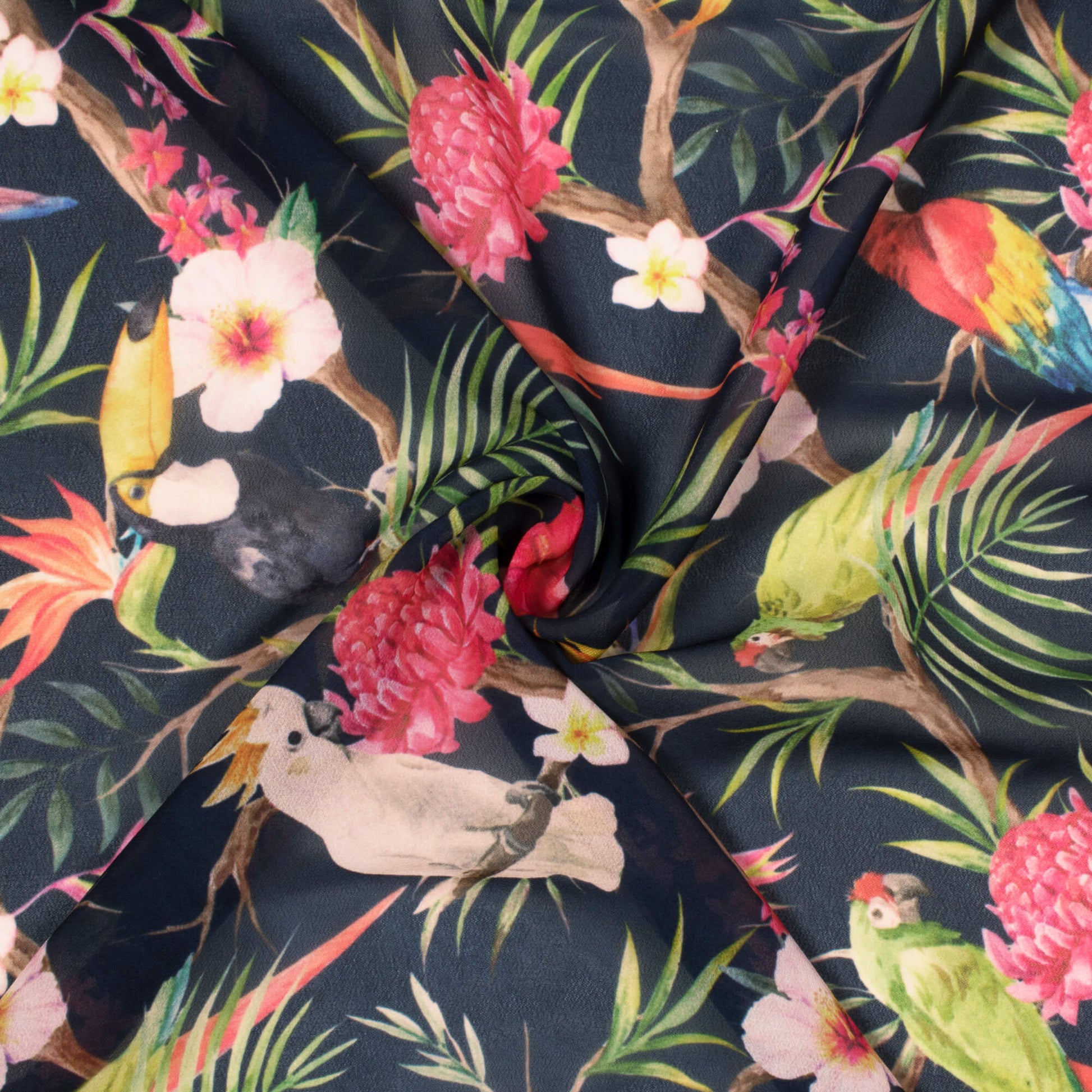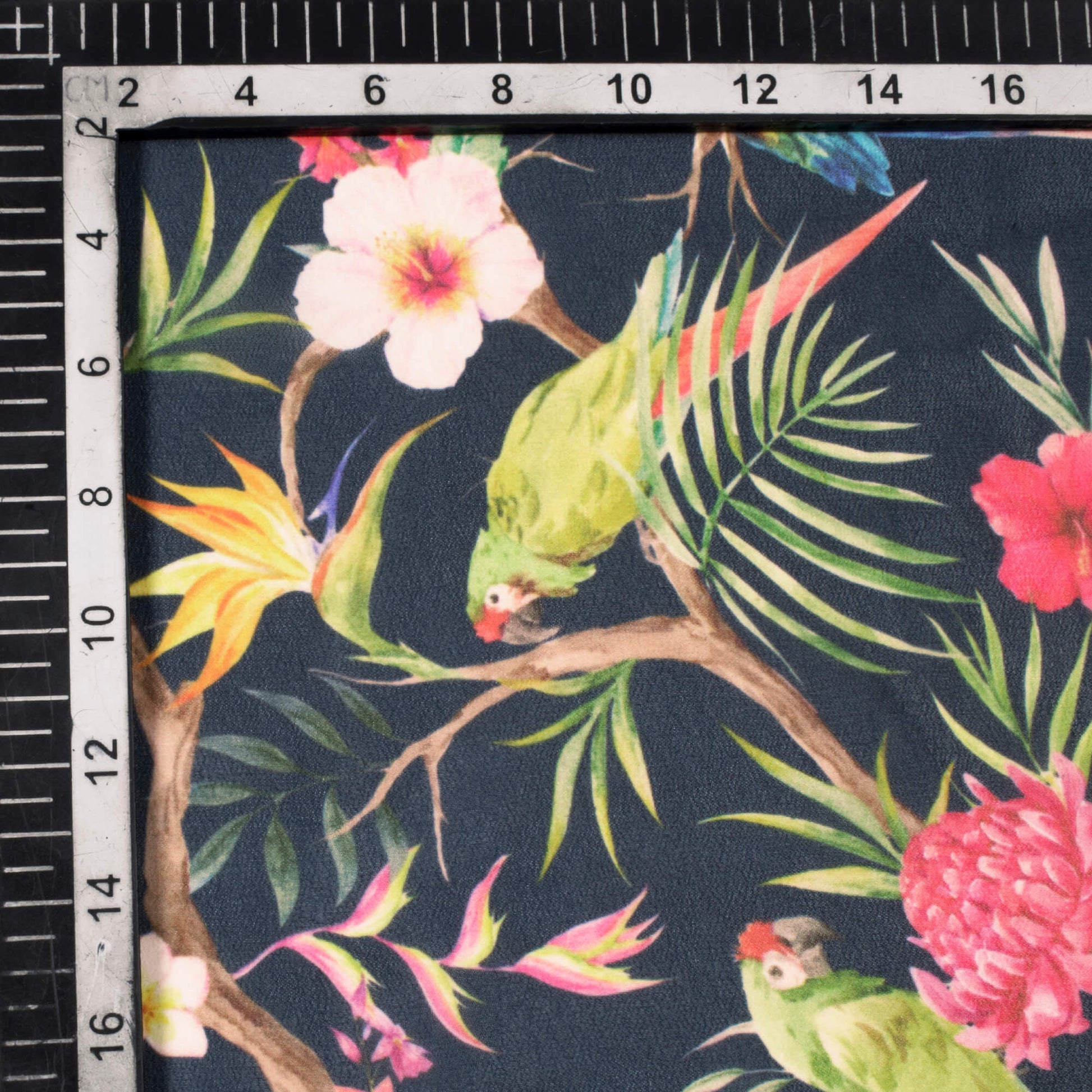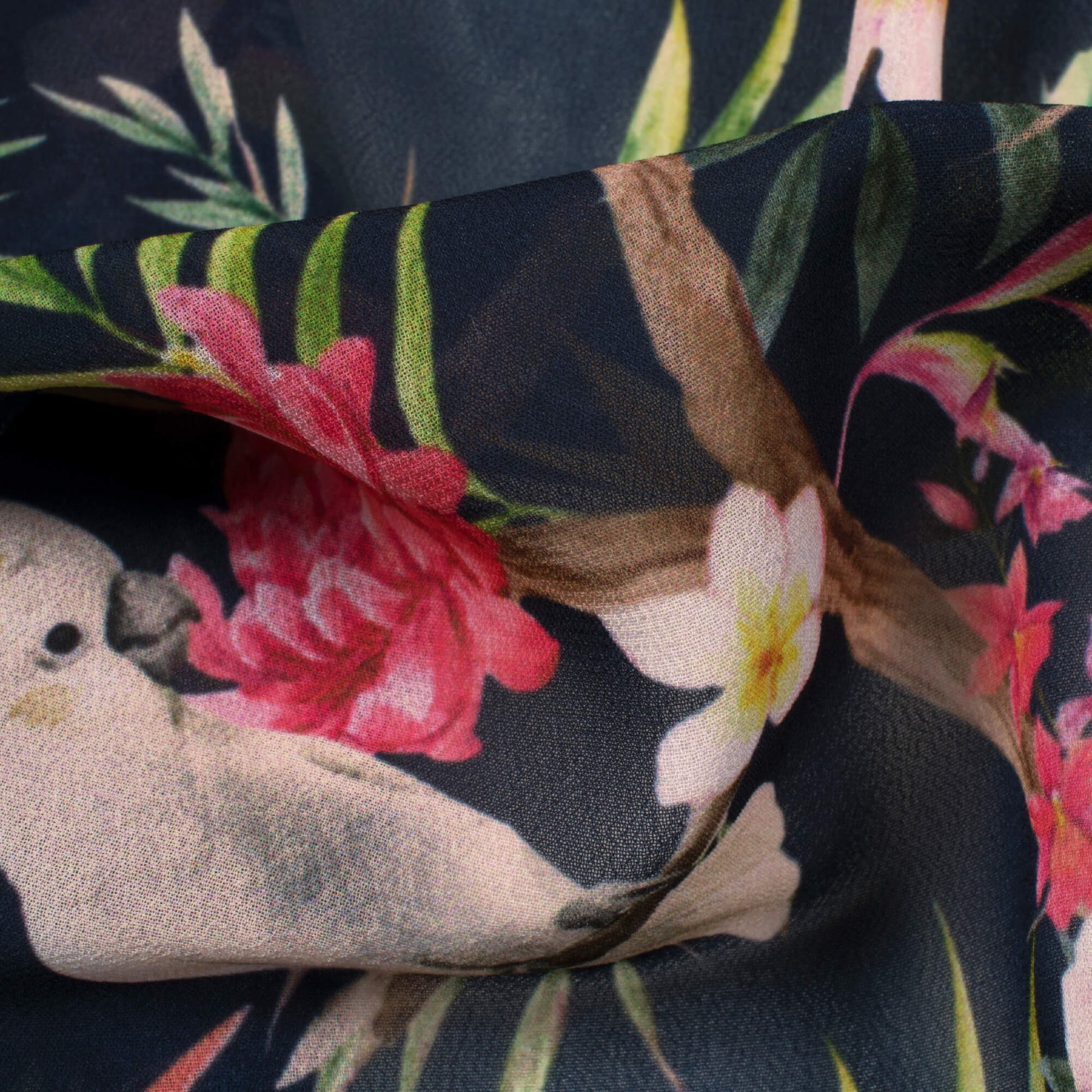 Black And Pink Tropical Pattern Digital Print Georgette Fabric