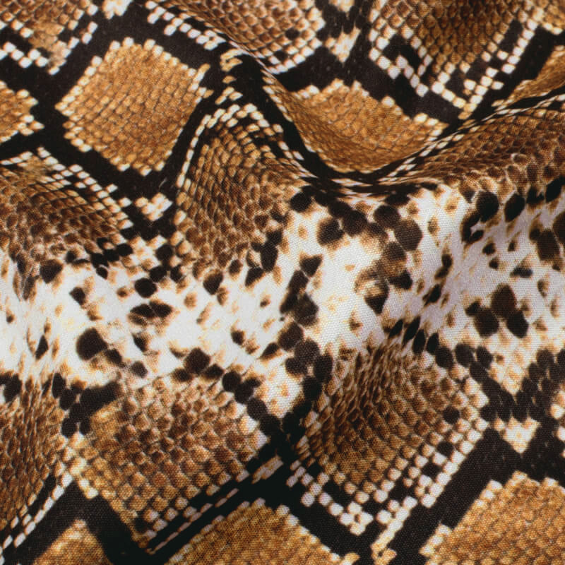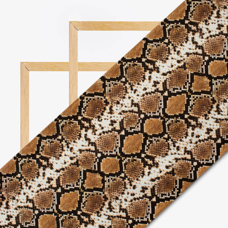 Black And Russet Brown Snake Animal Pattern Digital Print Crepe Fabric