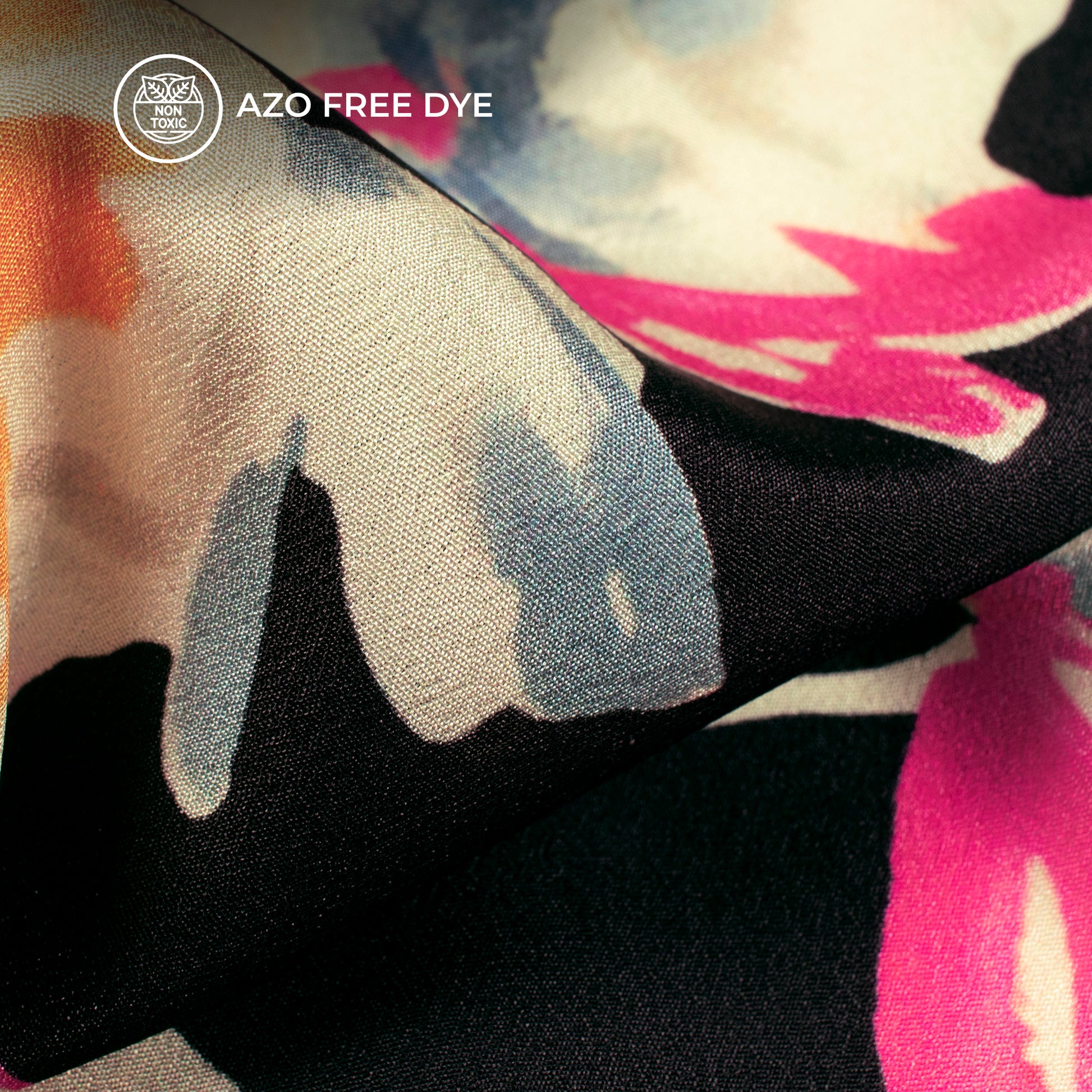 Crepe is a silk, wool or synthetic fiber fabric with a distinctively crisp, crimped appearance. It has a flowy drape that works especially well for garment sewing. It is a bit rough to the touch. Crepe silk is the perfect combination of comfort & elegance. It is well suited for any garment that requires a flowing, drapery fabric. Blouses, skirts, sarees and dresses all look great sewn with crepe silk fabric.