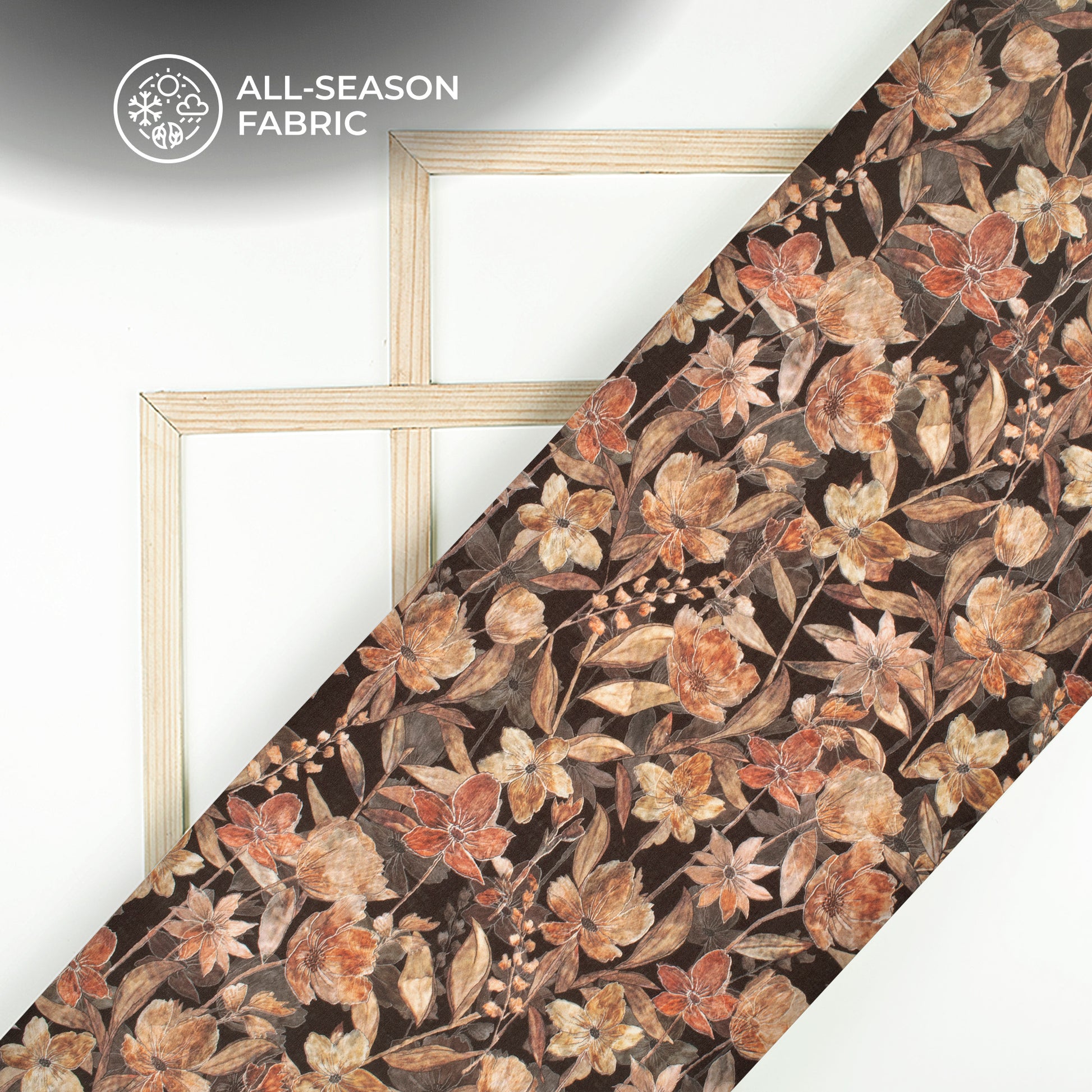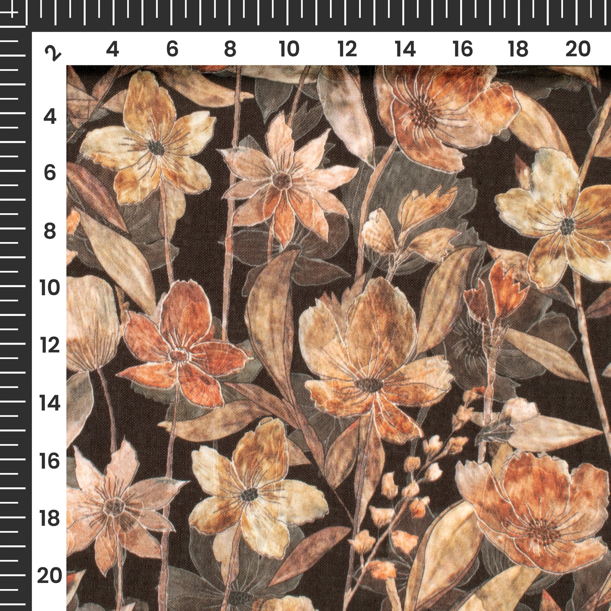 Black Floral Digital Print Linen Textured Fabric (Width 56 Inches)