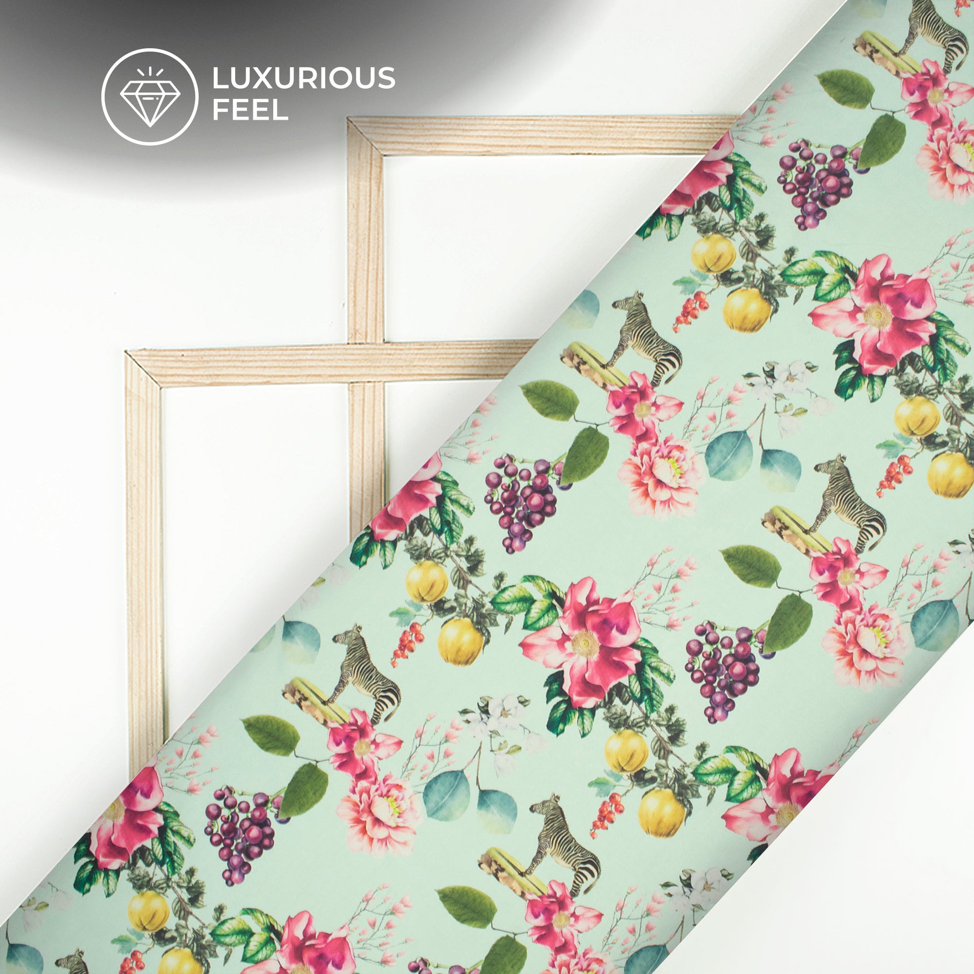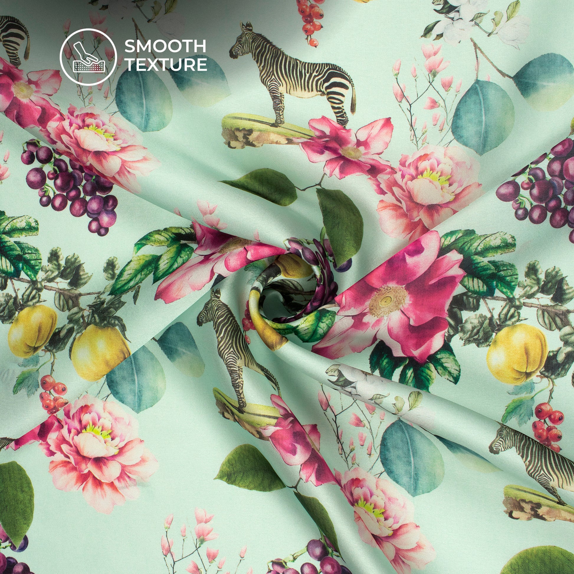 Blooming Floral Garden Digital Print Georgette Satin Fabric
