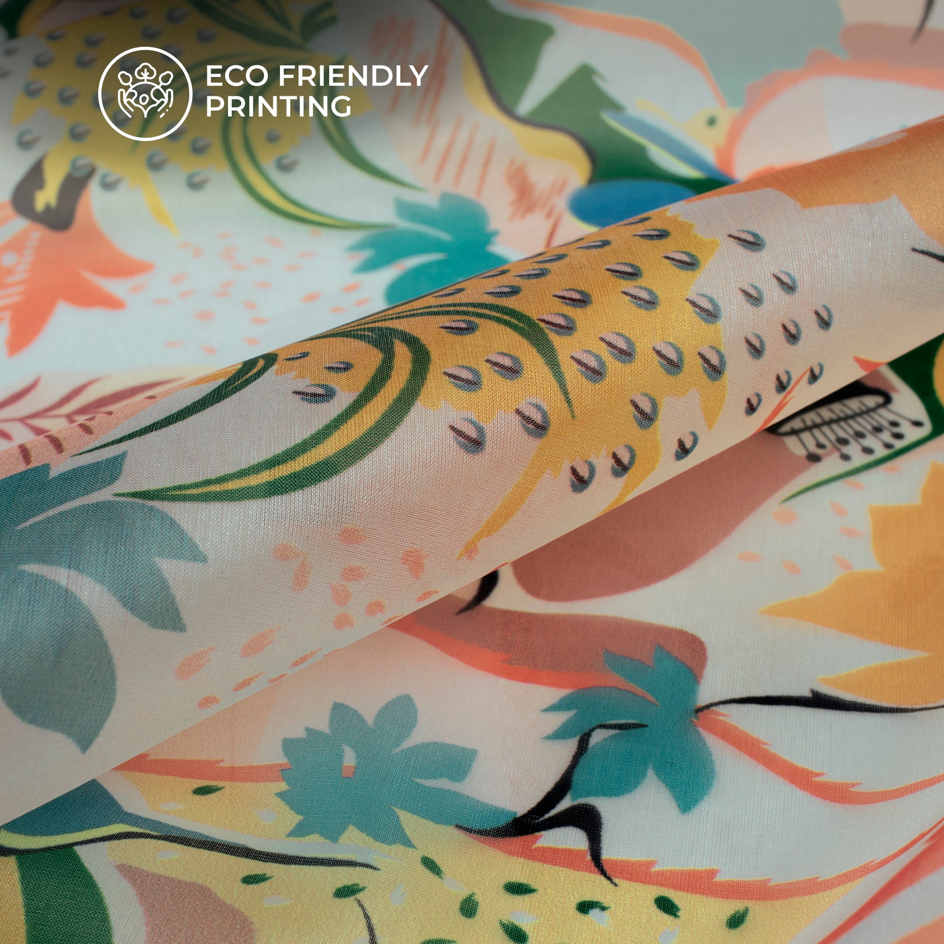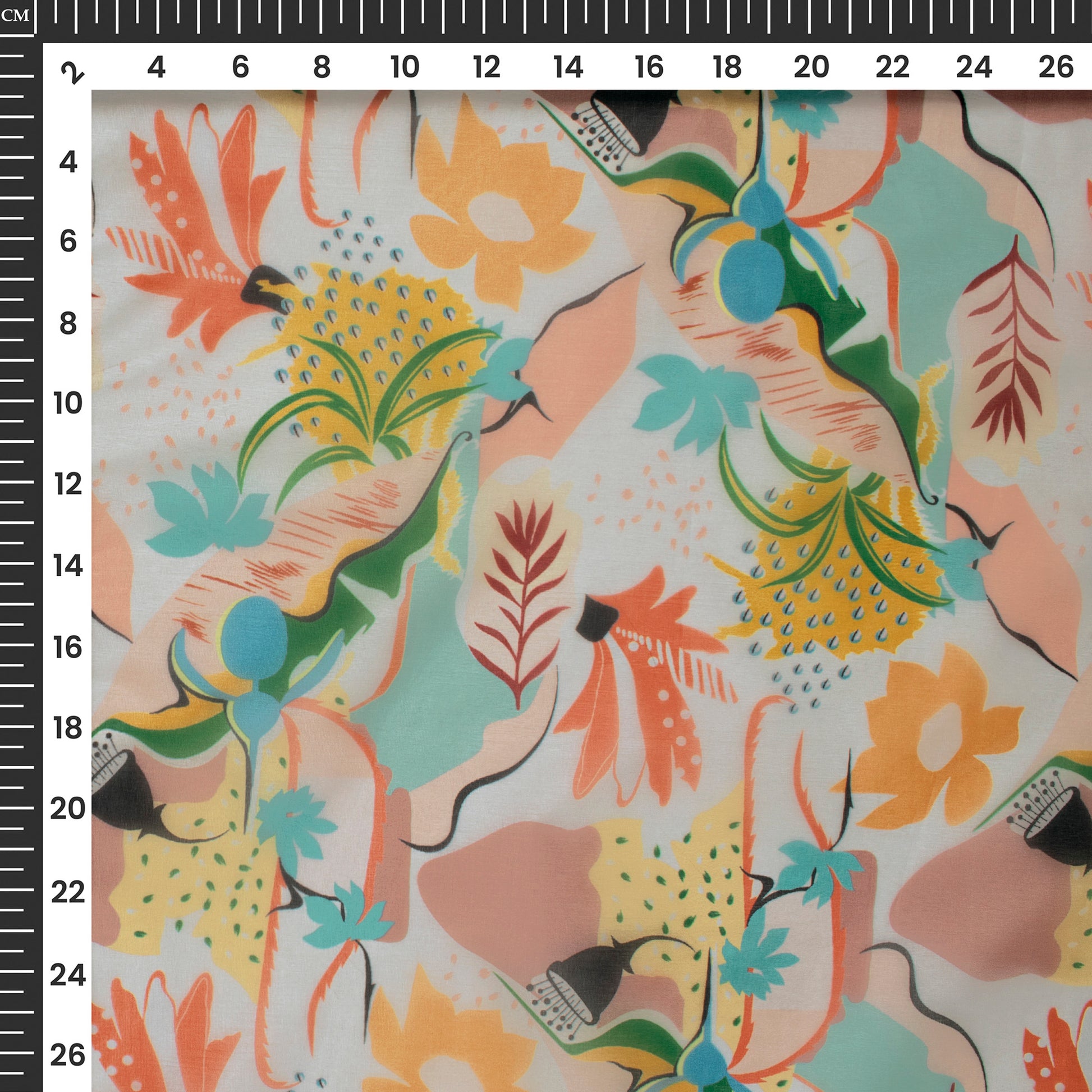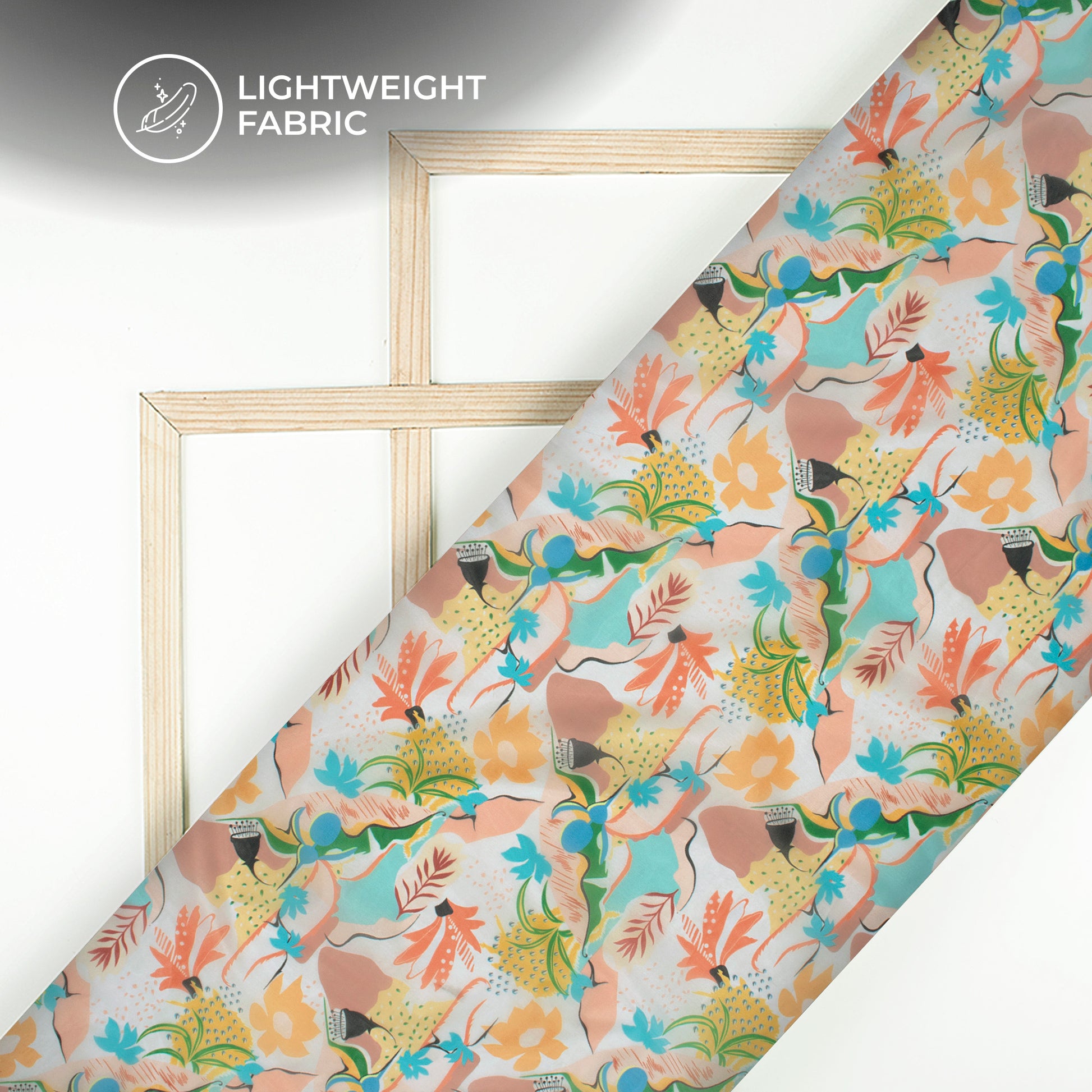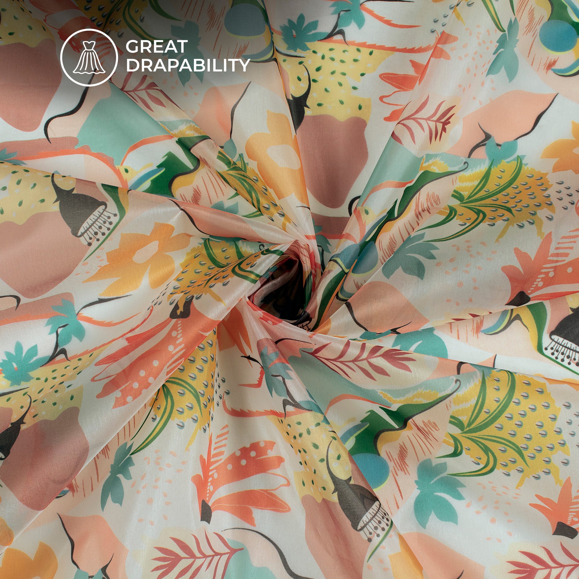 BotanicBlitz - Abstract Floral Digital Print Organza Satin Fabric