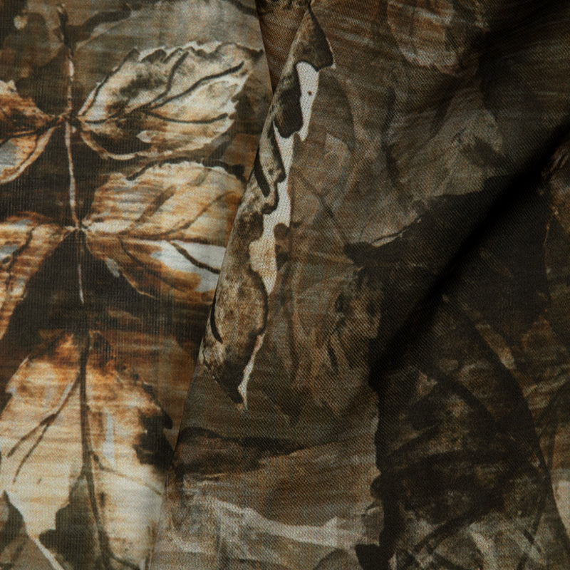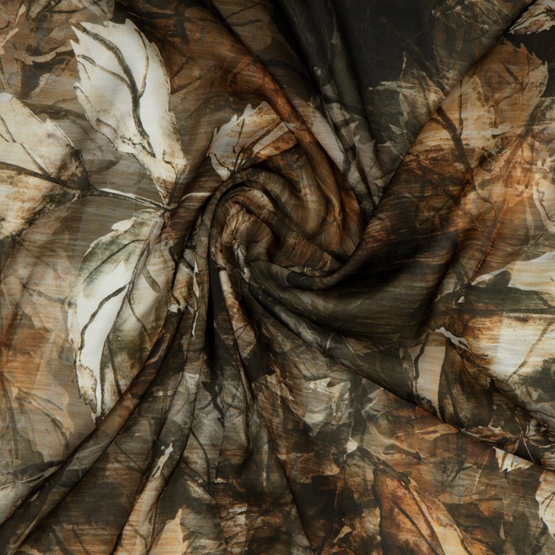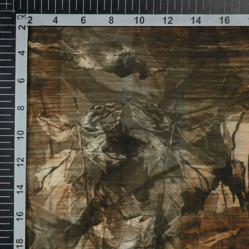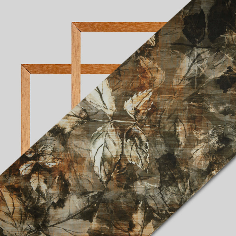 Brown Leaf Digital Print Georgette Satin Fabric