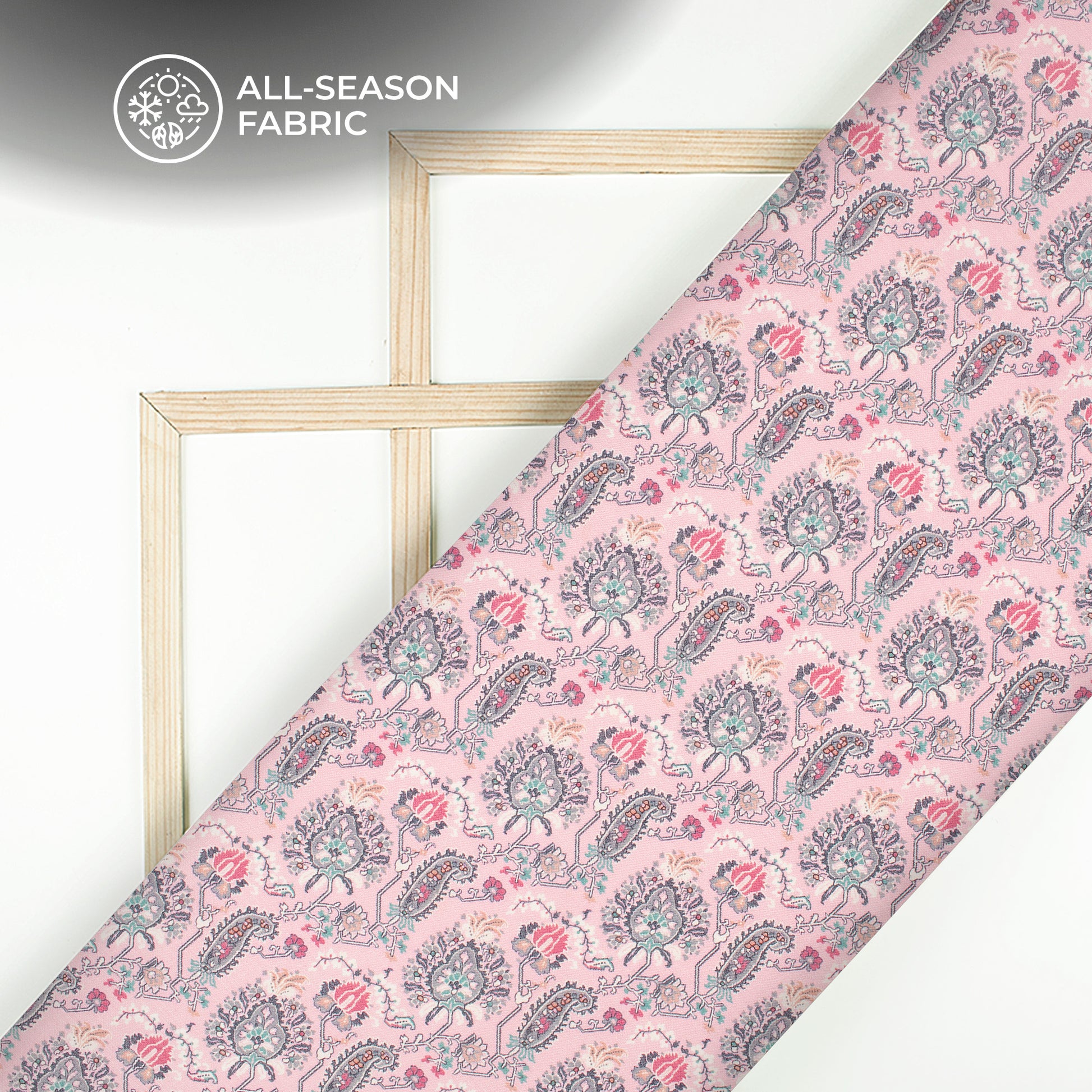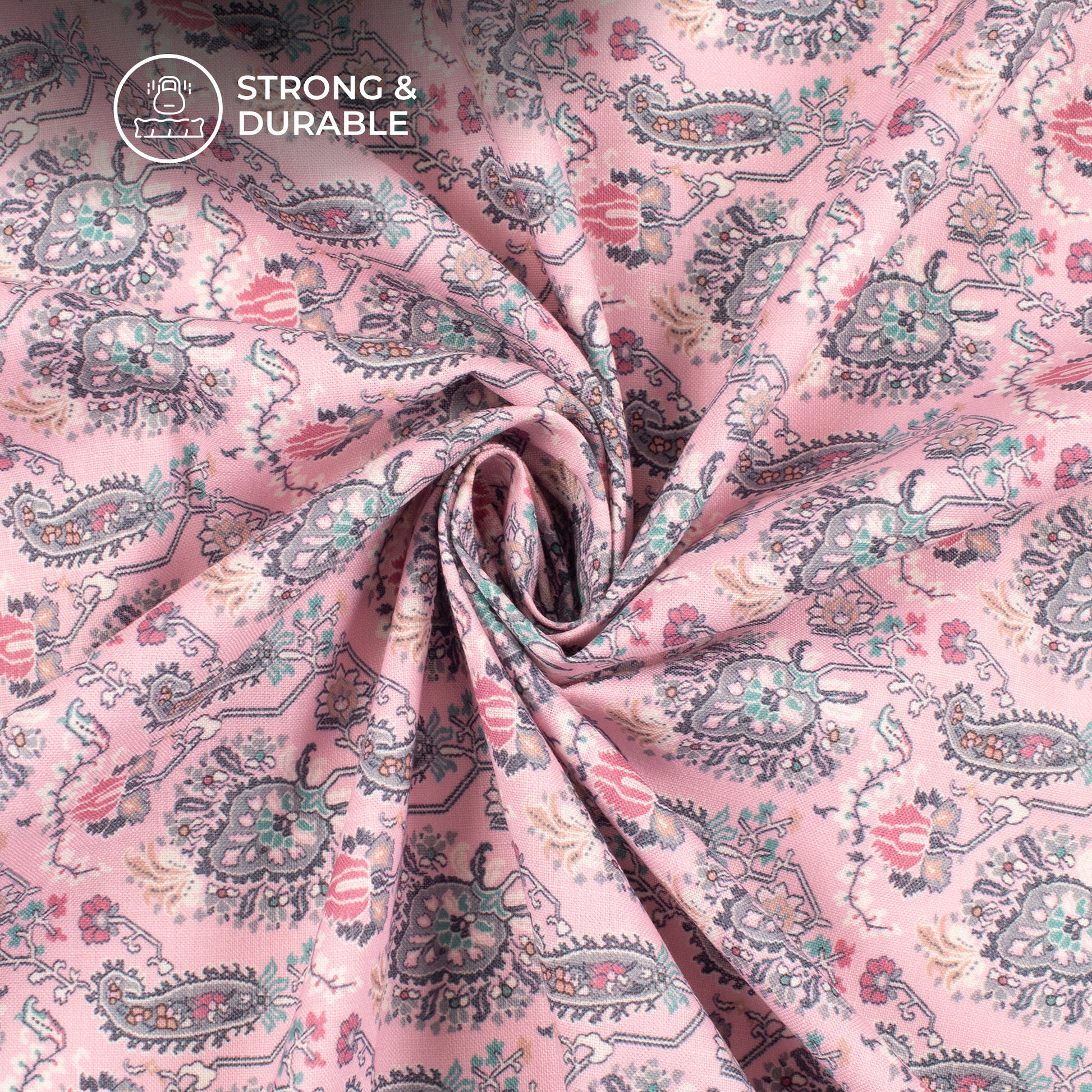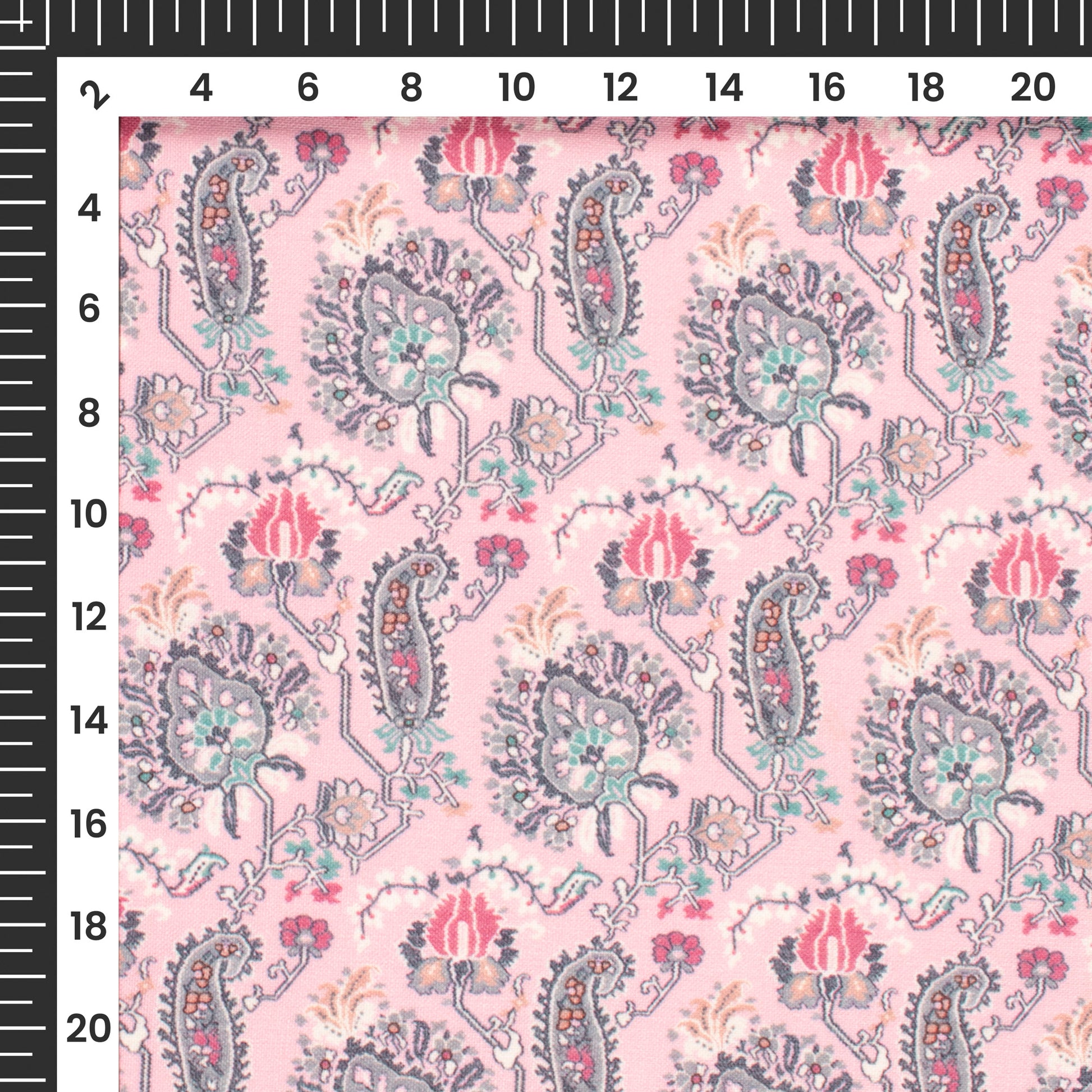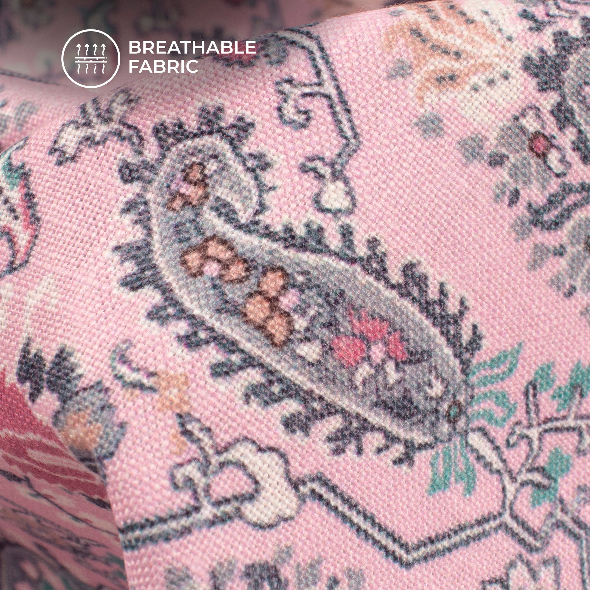 Bubblegum Pink Ethnic Digital Print Linen Textured Fabric (Width 56 Inches)