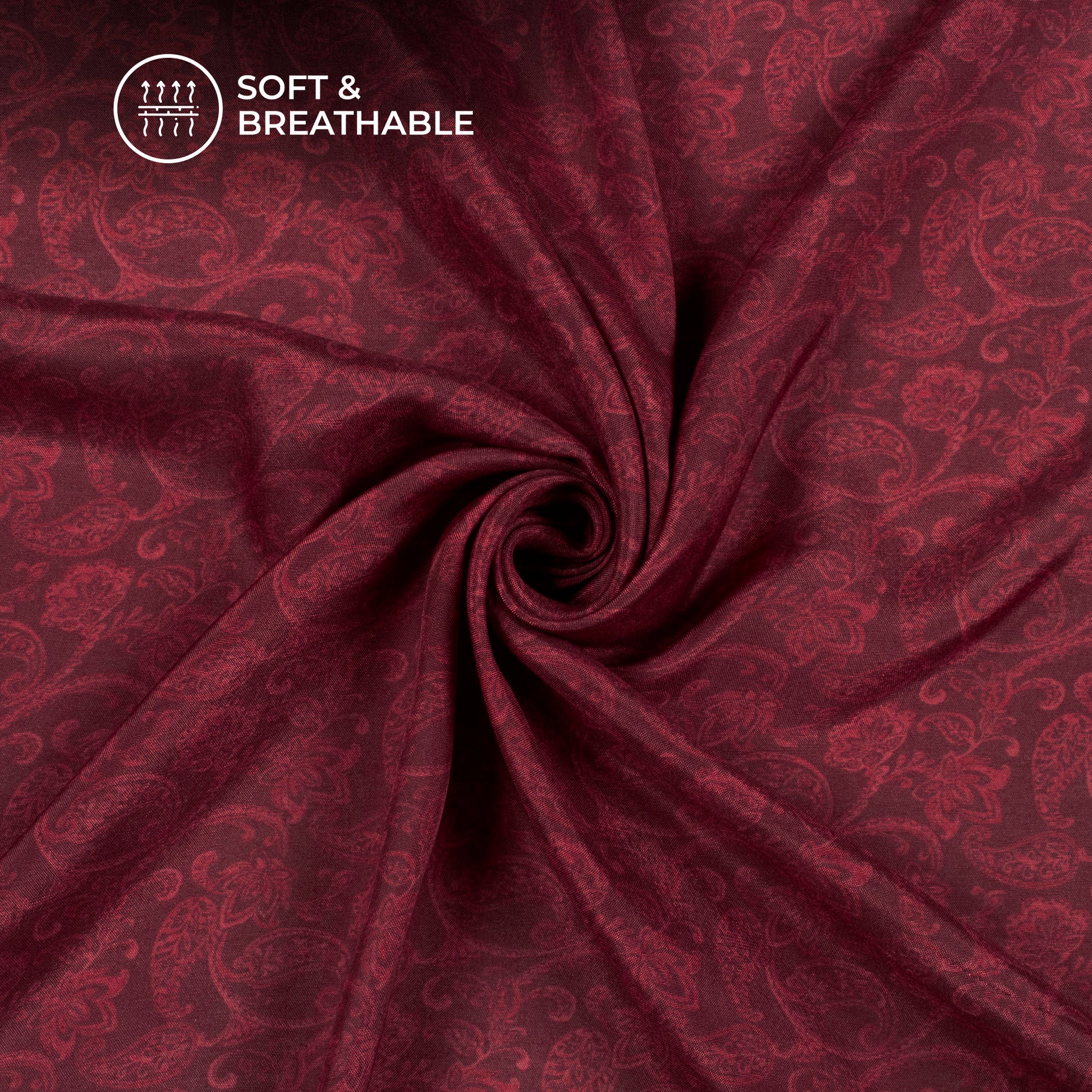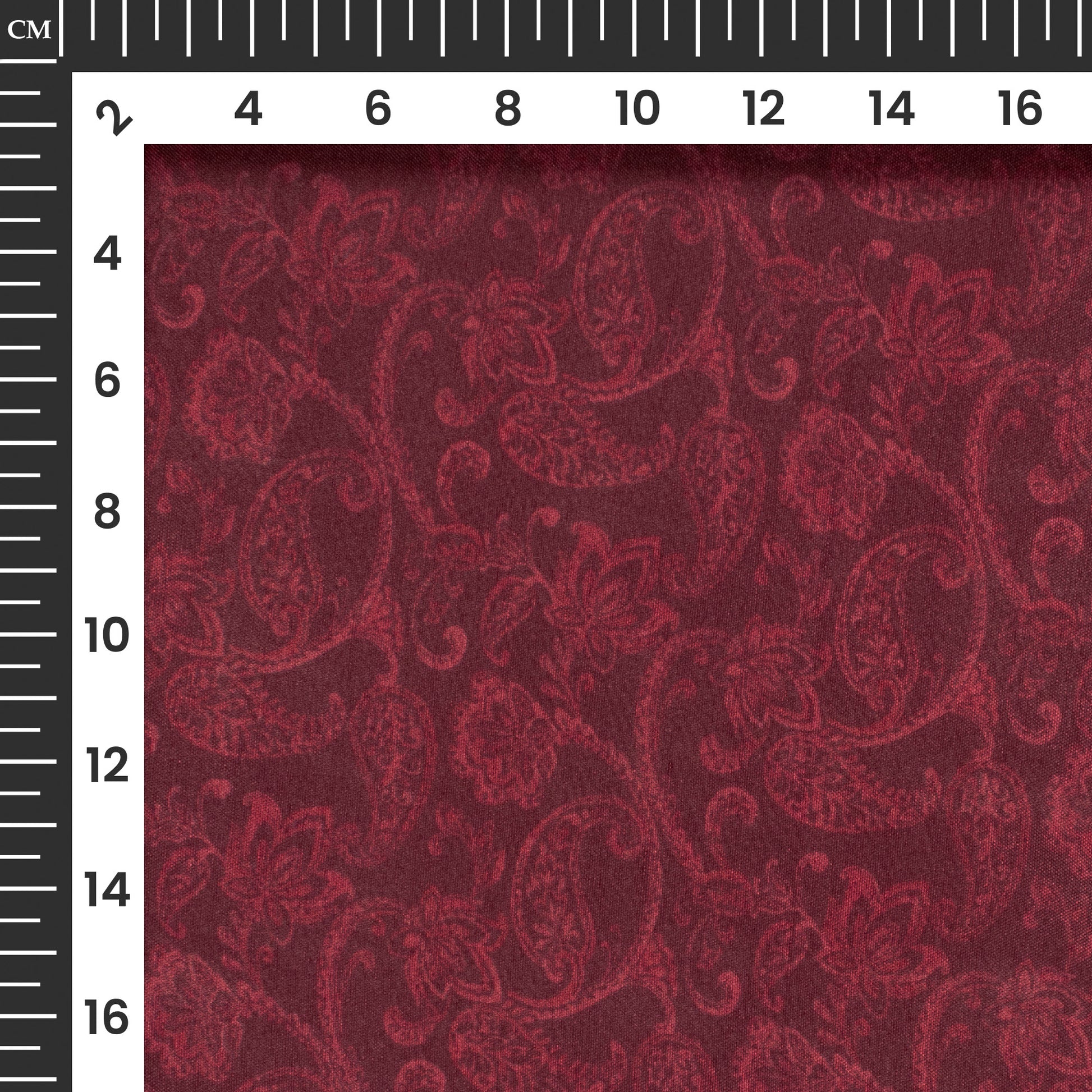 Burgundy Red Paisley Digital Print Viscose Muslin Fabric