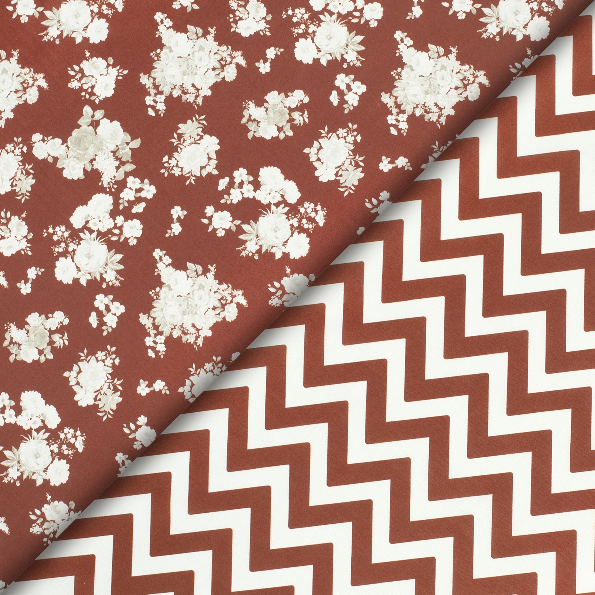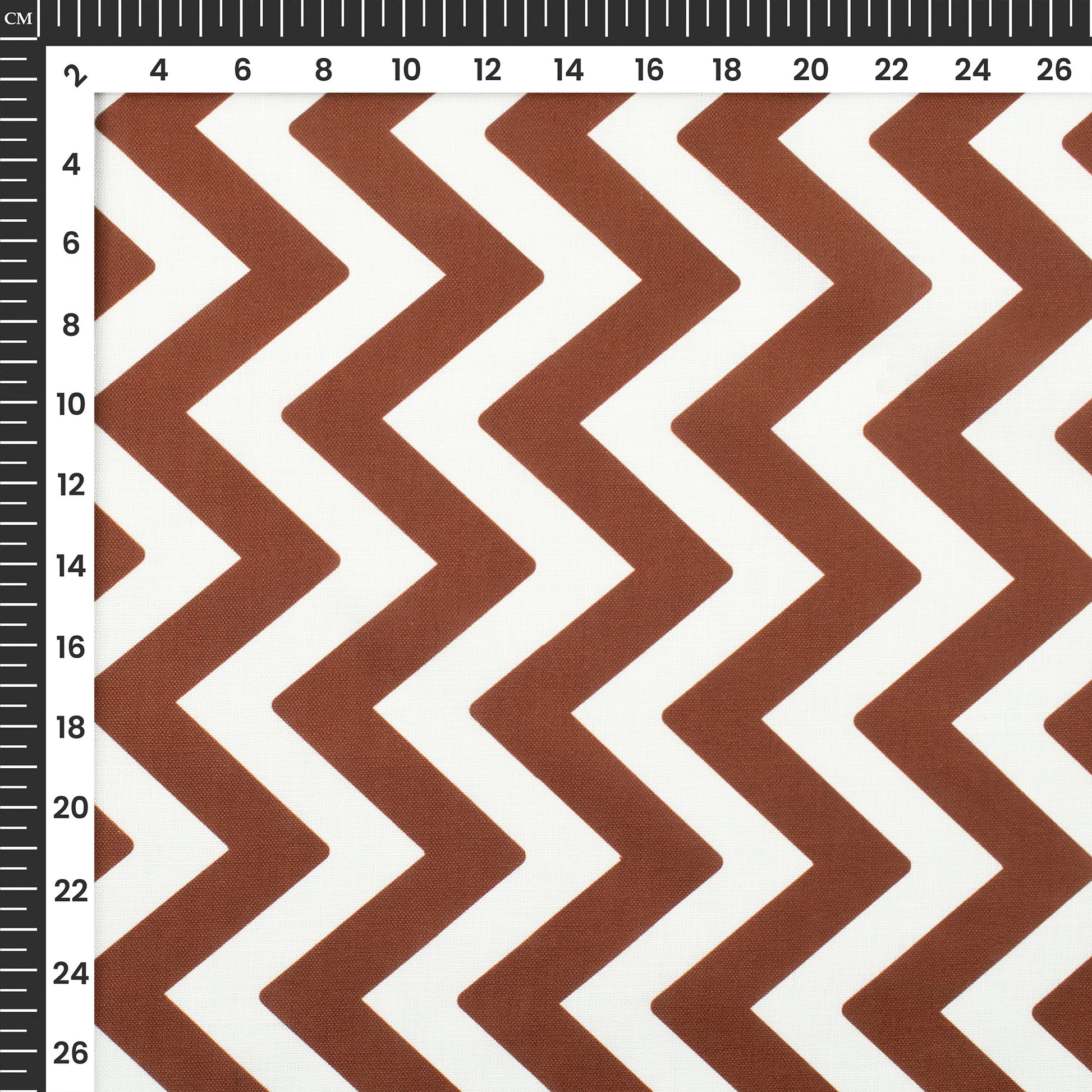 Burnt Umber Brown Chevron Digital Print Poly Linen Slub Fabric