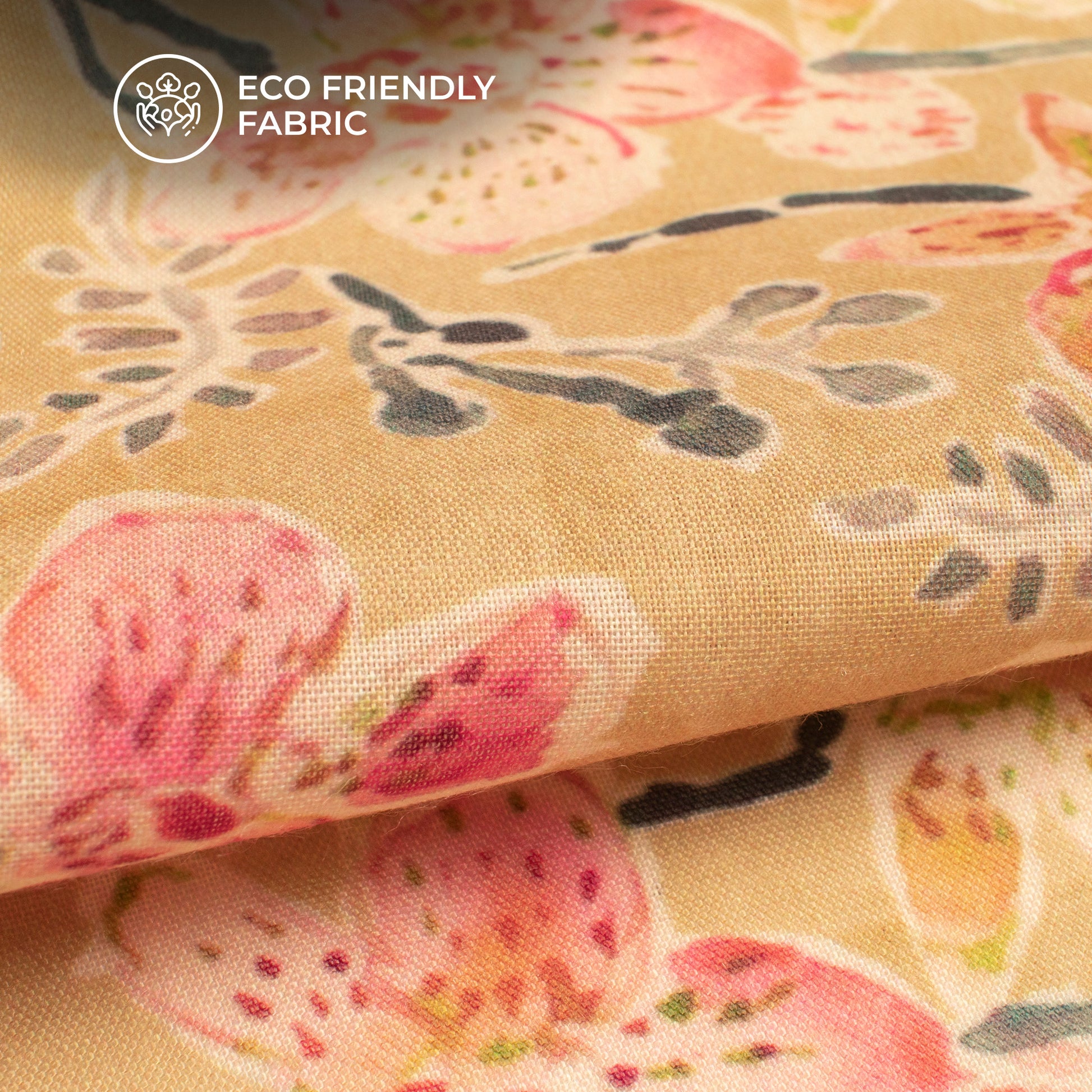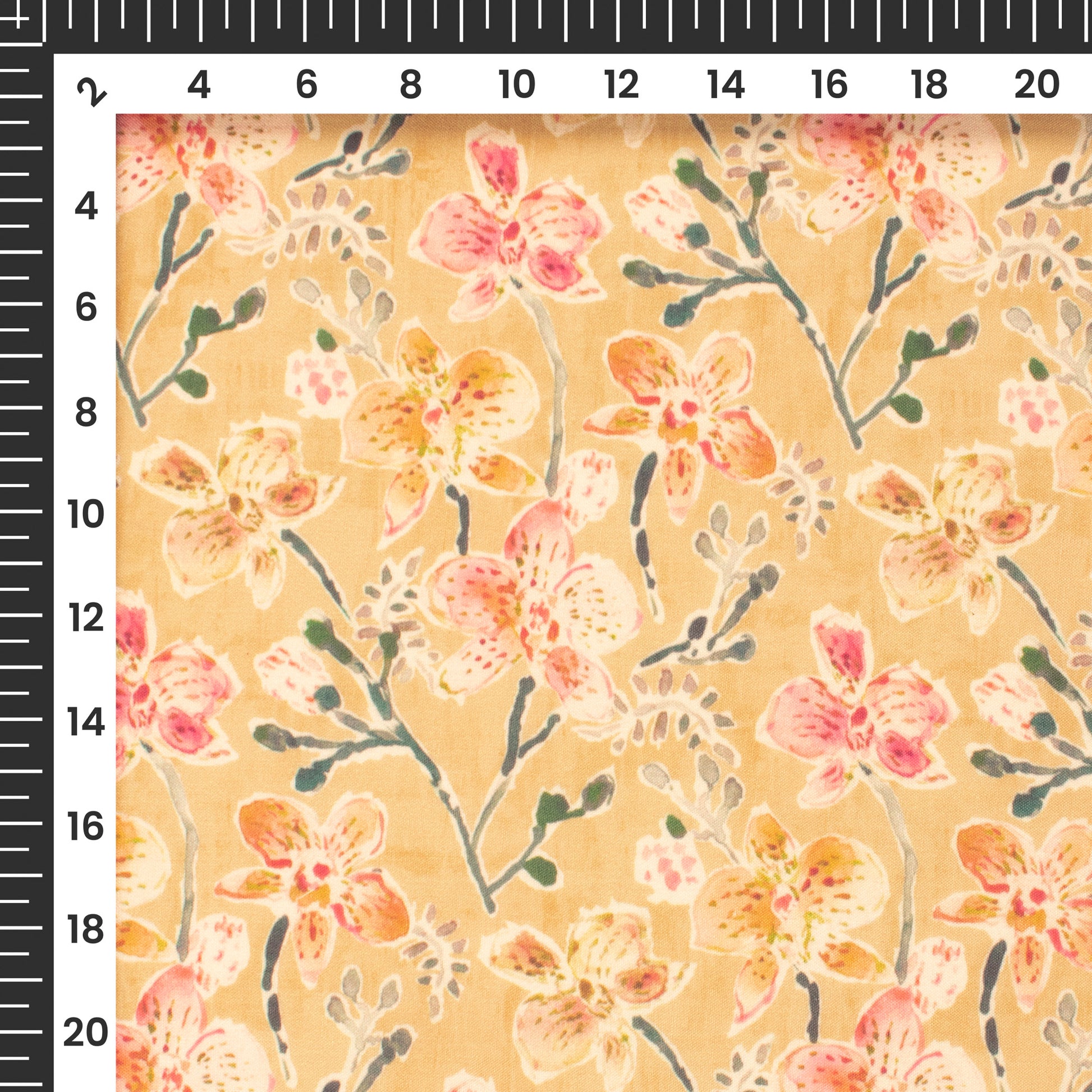 Butter Yellow Floral Digital Print Poly Cambric Fabric