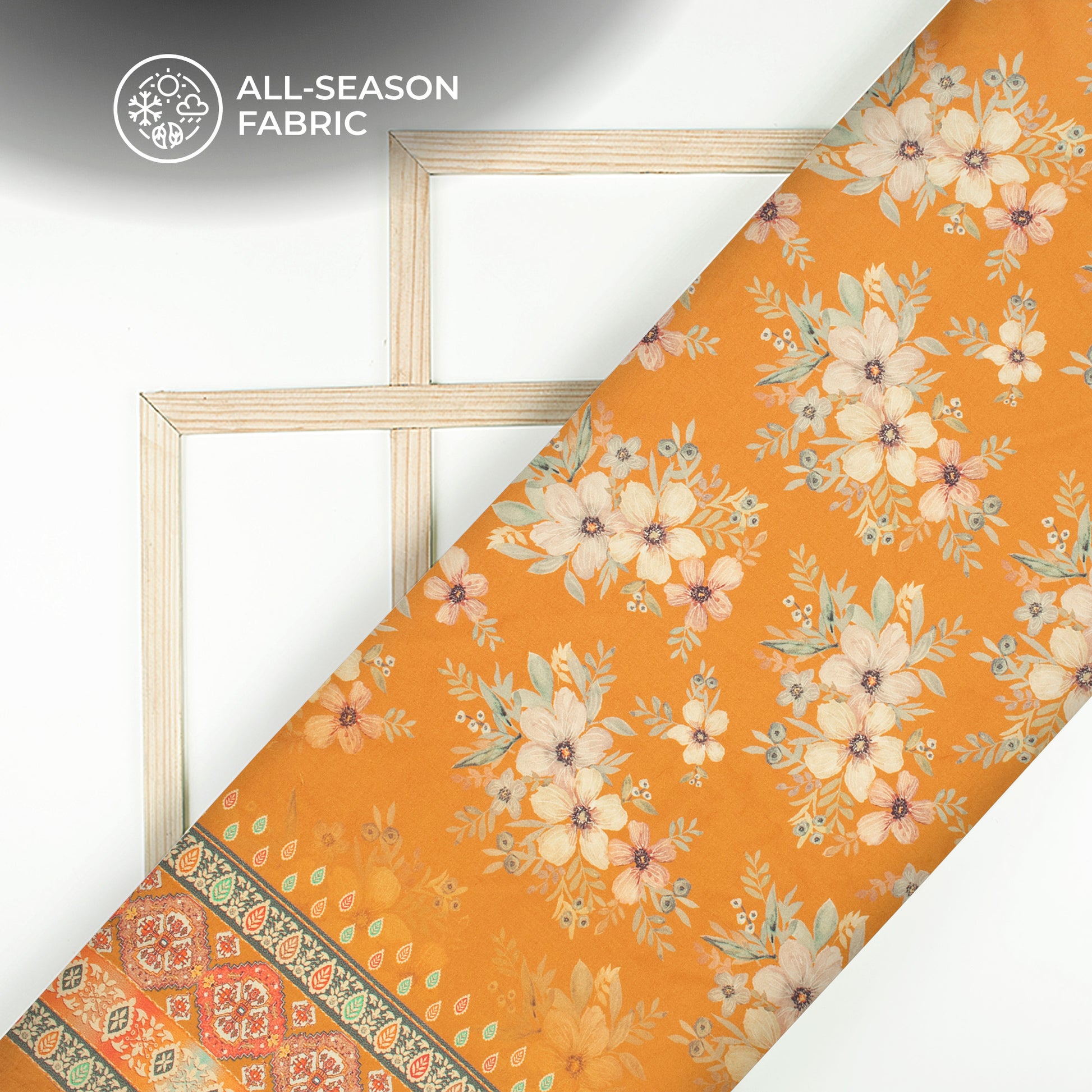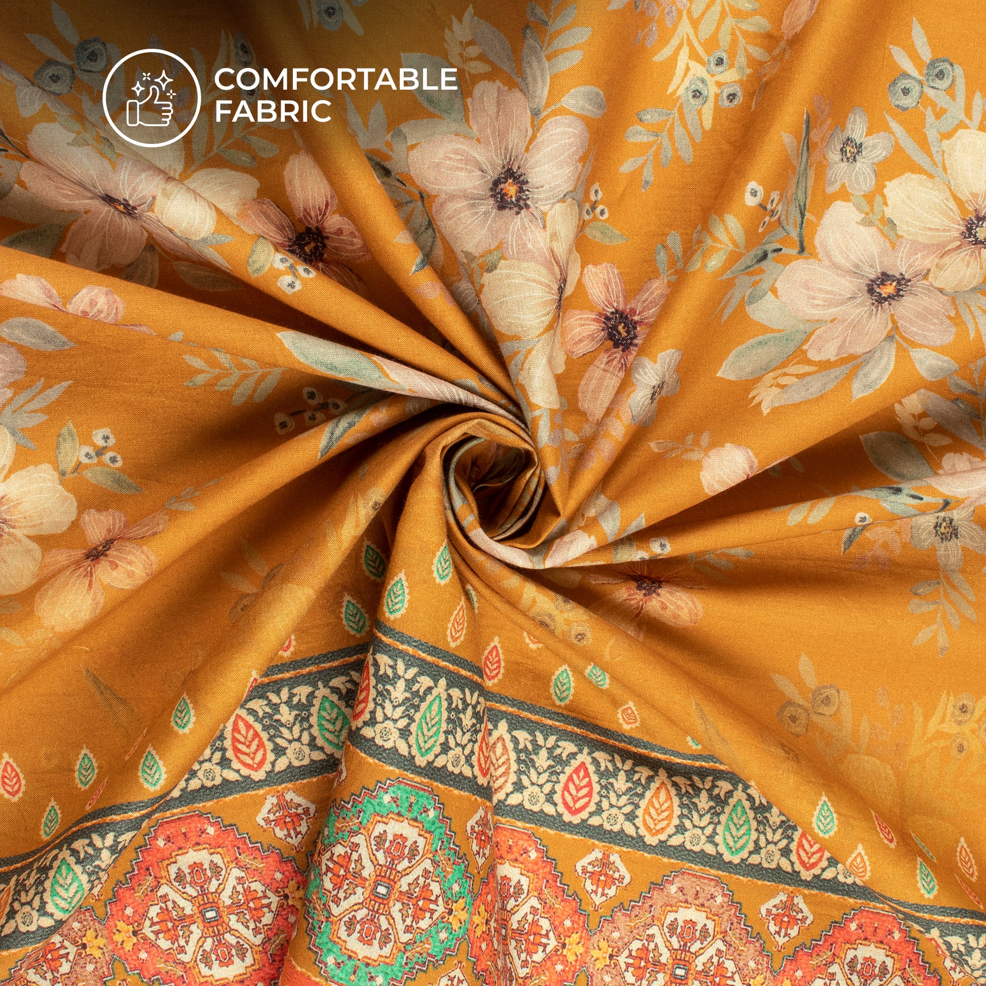 Canary Yellow Floral Digital Print Cotton Cambric Fabric