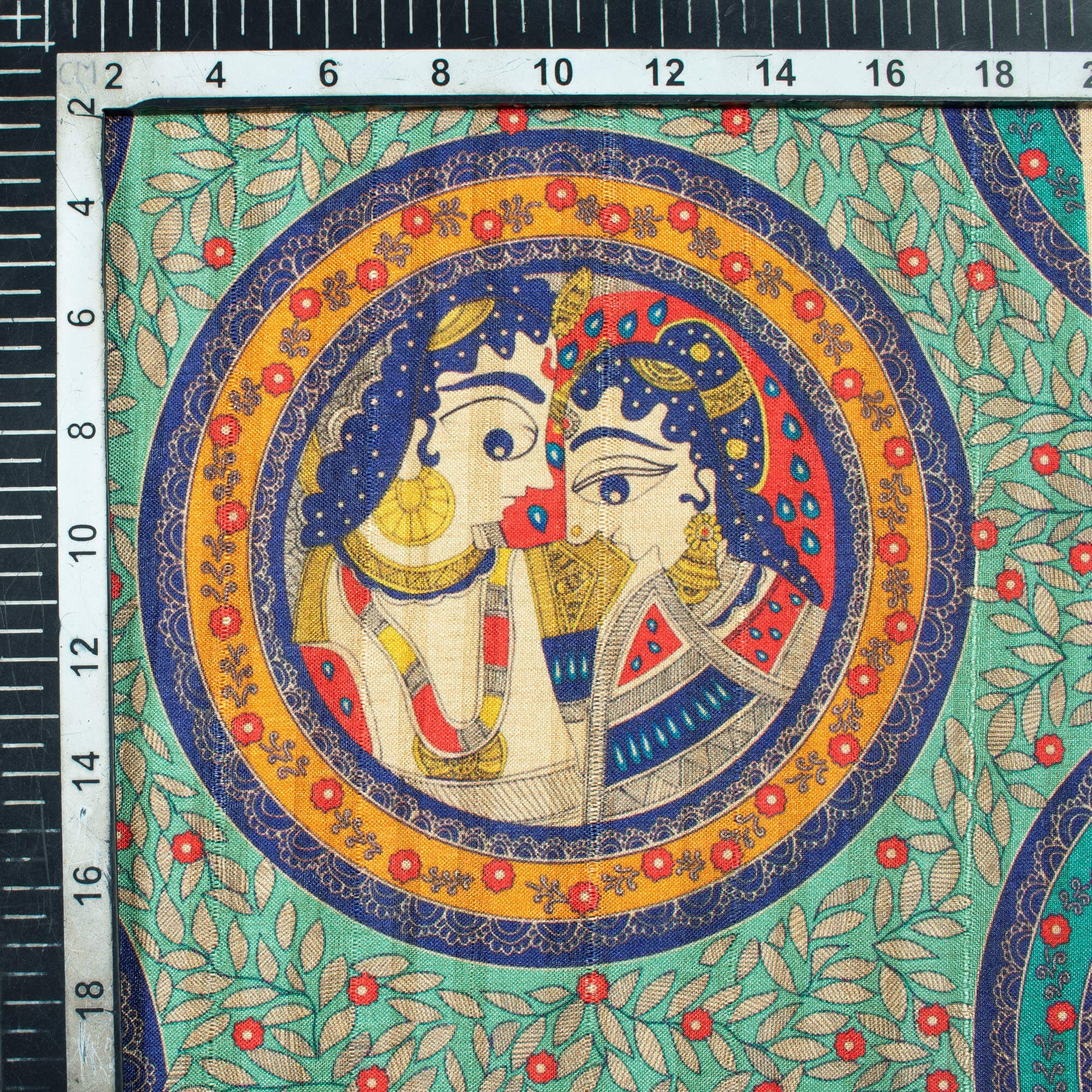 Celeste Green And Royal Blue Madhuvanii Pattern Digital Print Art Tusser Silk Fabric