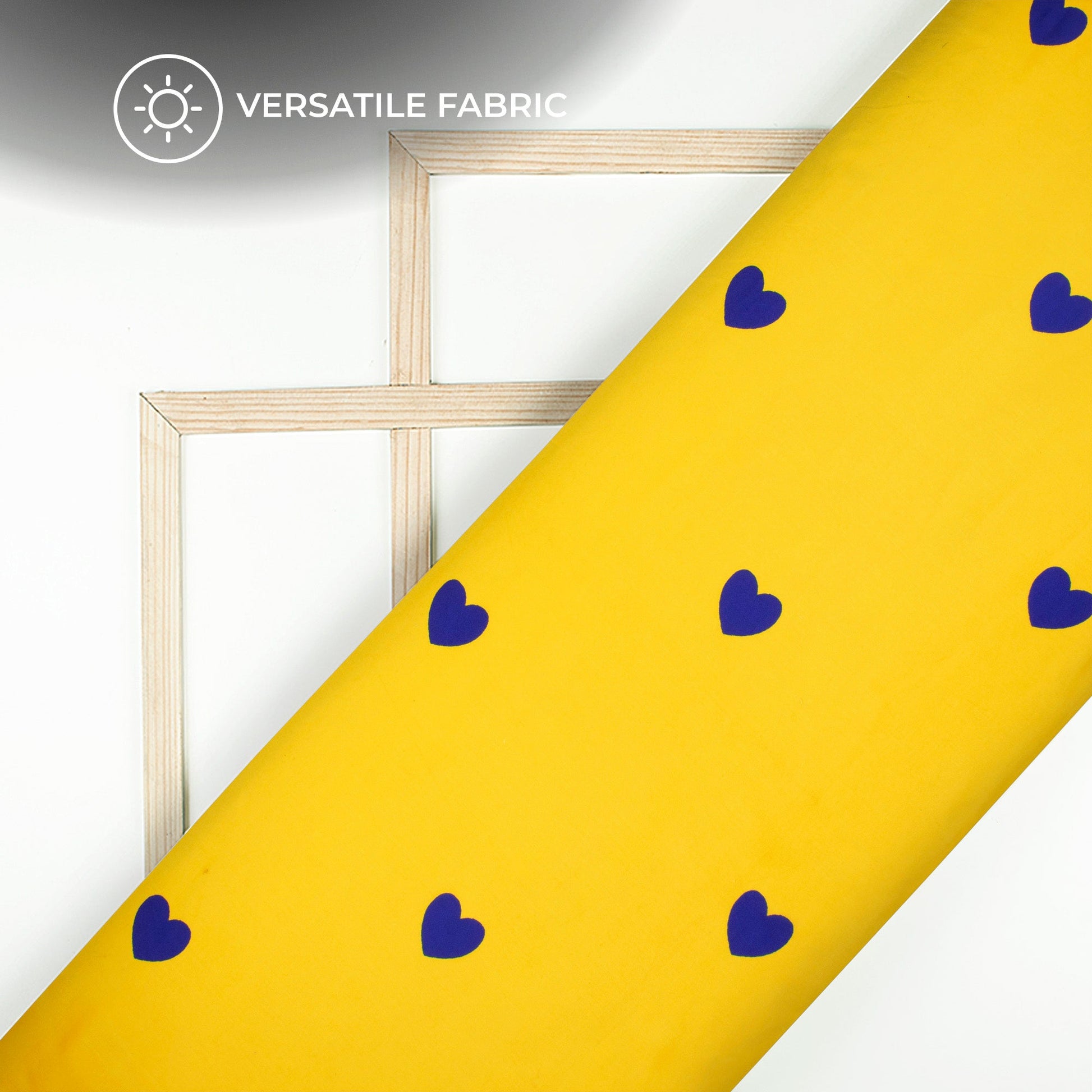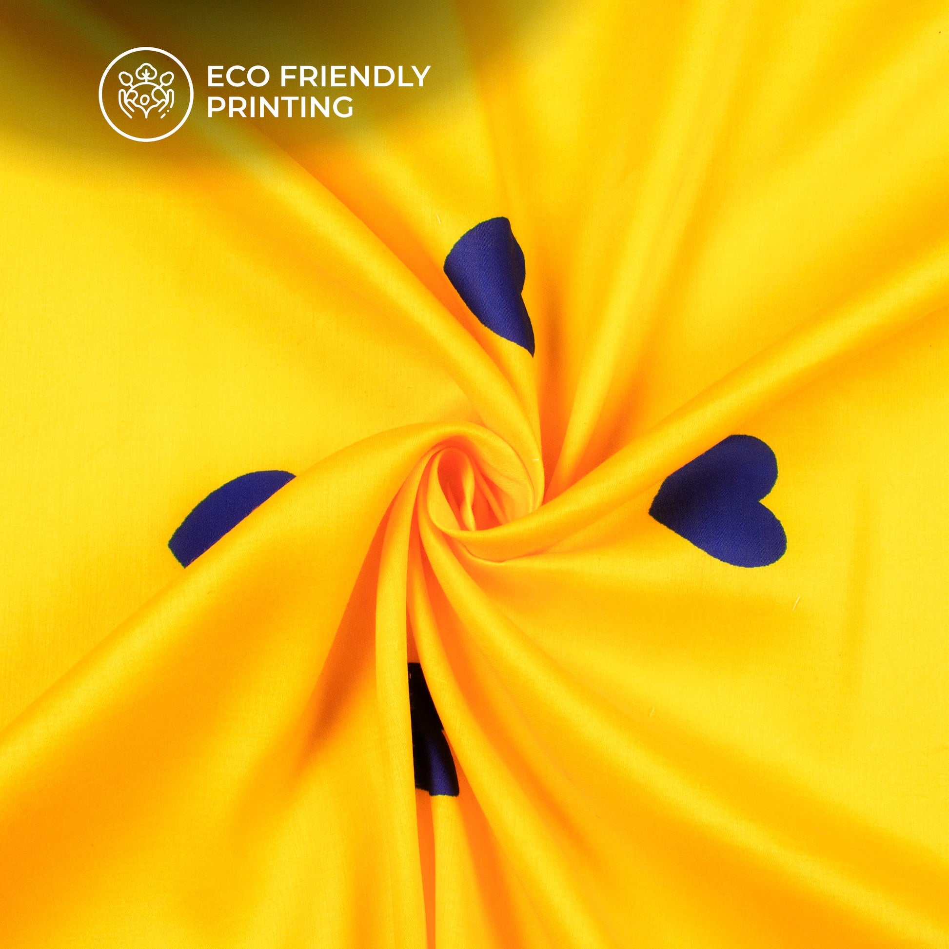 Charming Heart: Yellow Digital Print Poly Glazed Cotton Fabric